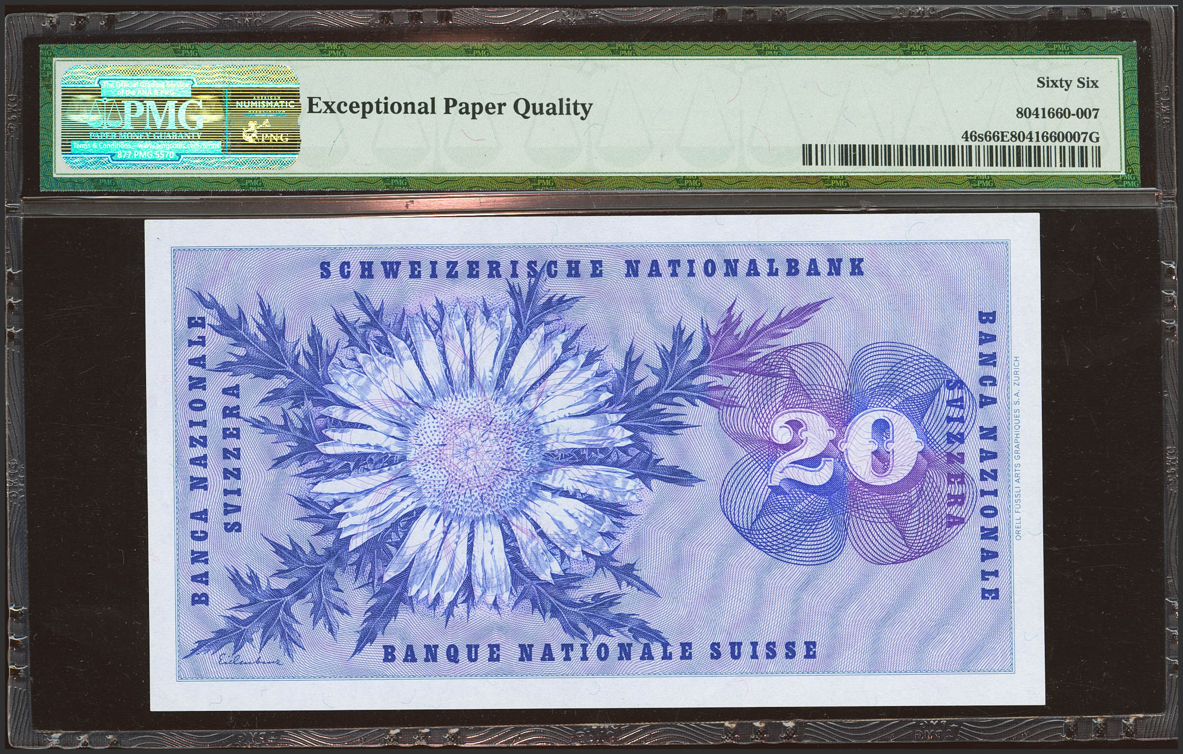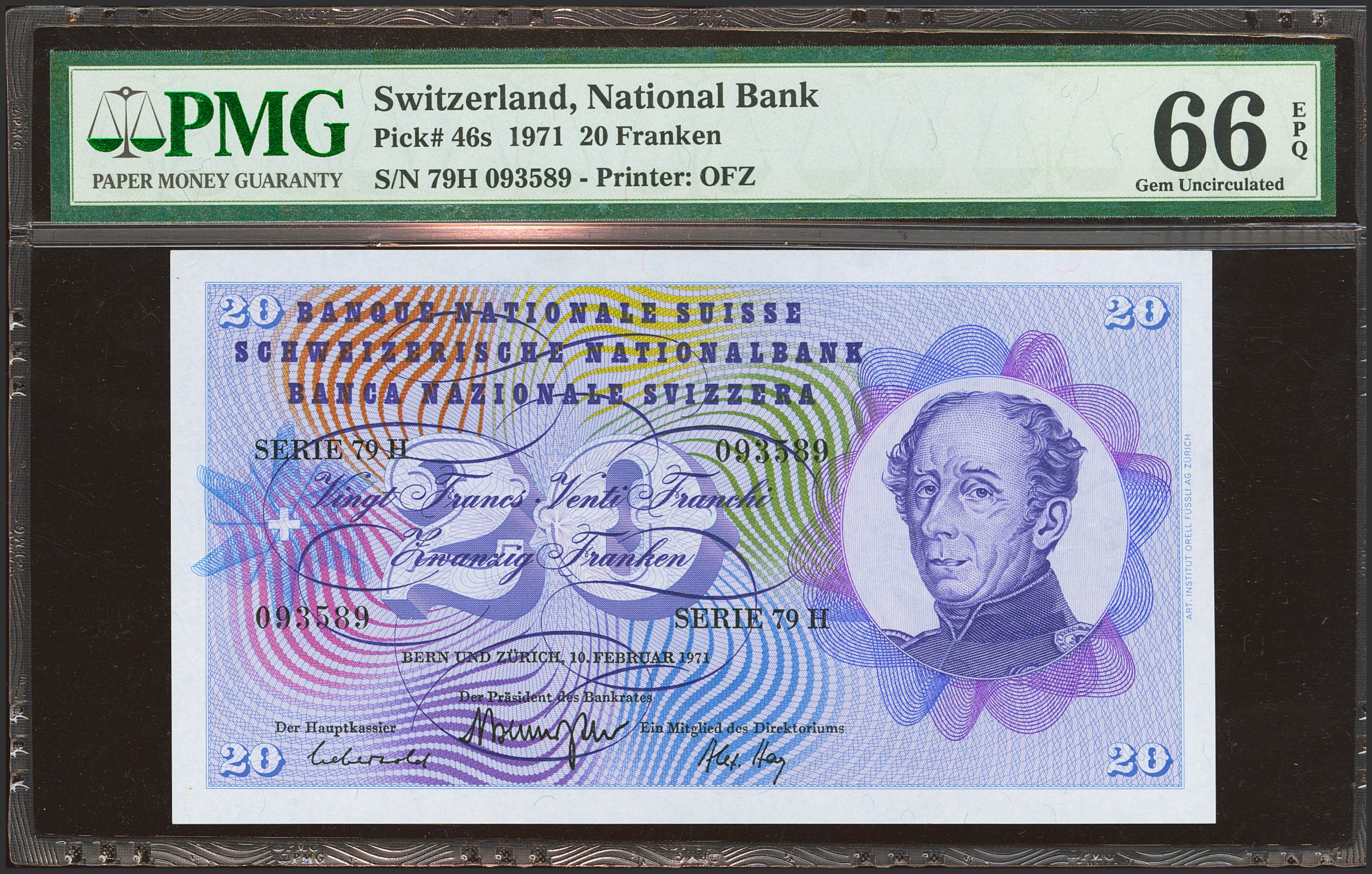 SWITZERLAND. 20 Franken. 10 February 1971. (Pick: 46s). PMG66EPQ.