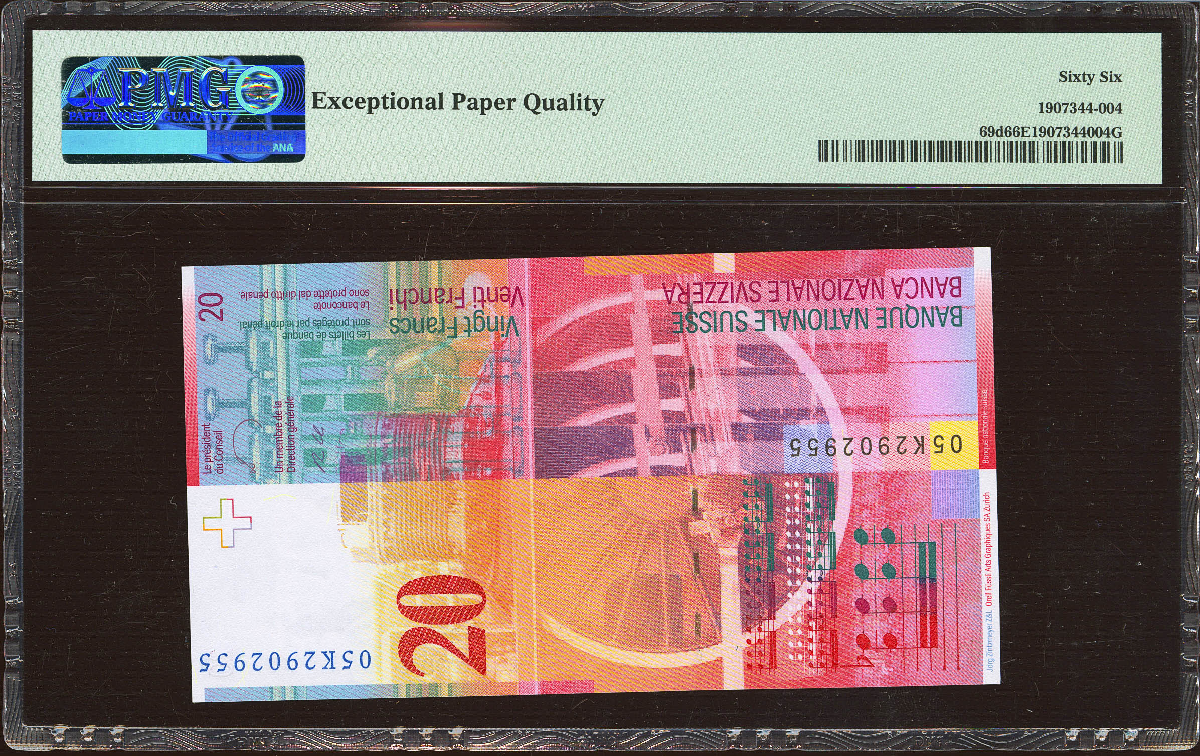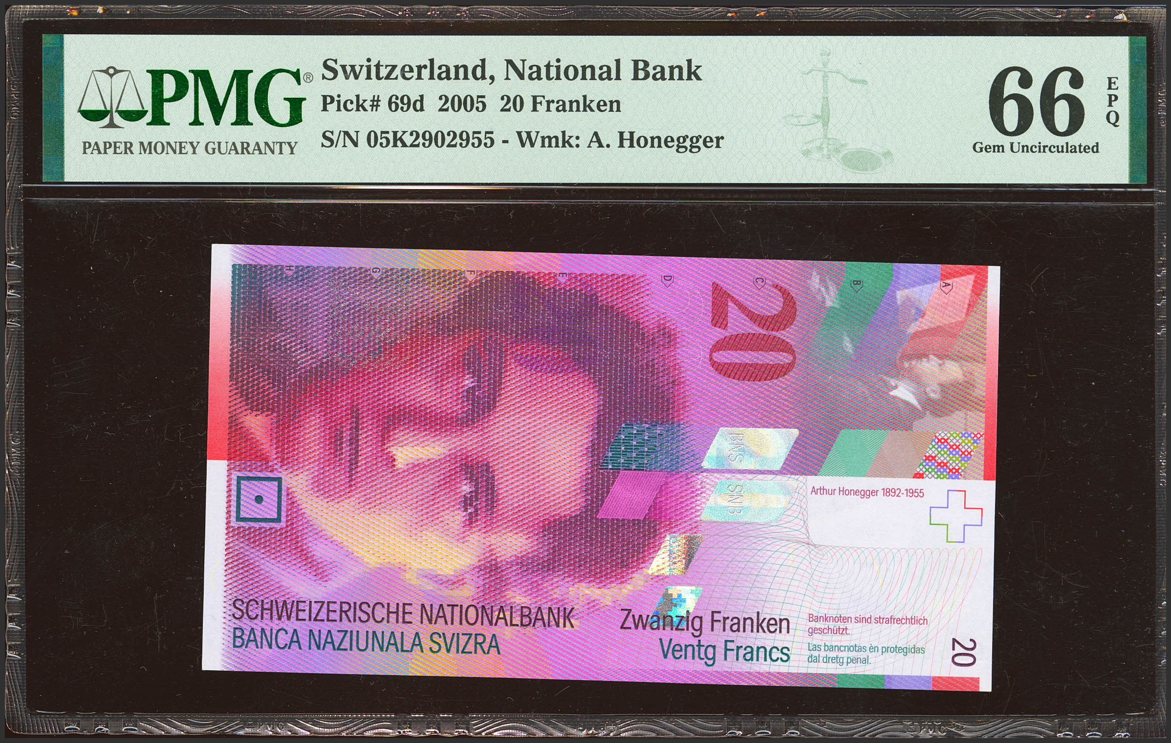 SWITZERLAND. 20 Franken. 2005. (Pick: 69d). PMG66EPQ.