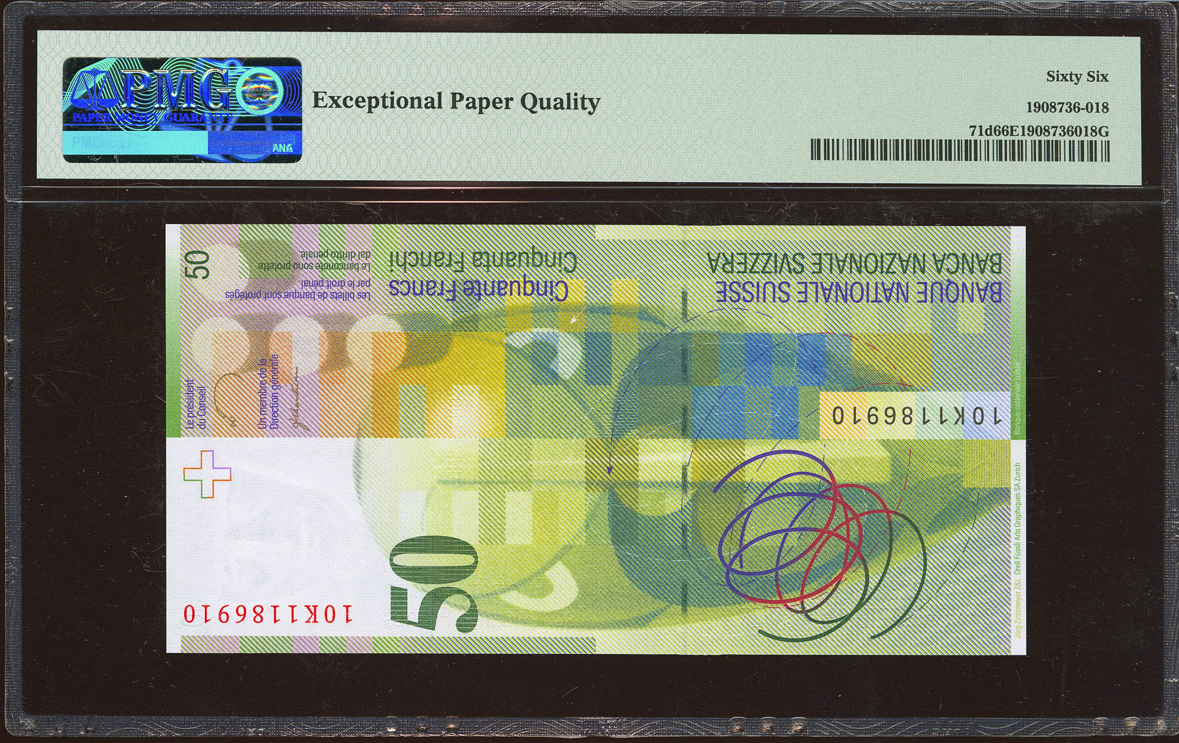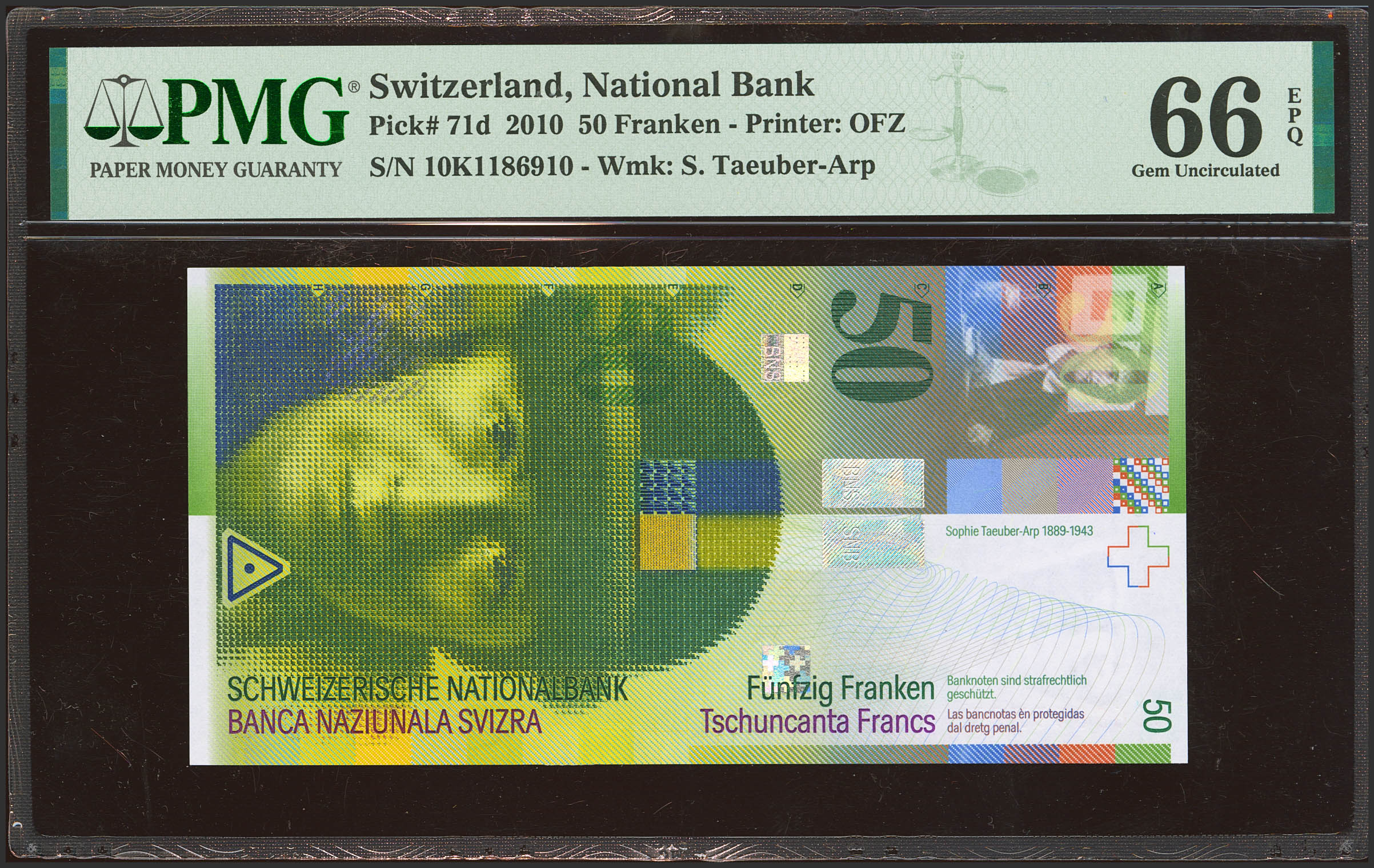 SWITZERLAND. 50 Franken. 2010. (Pick: 71d). PMG66EPQ.