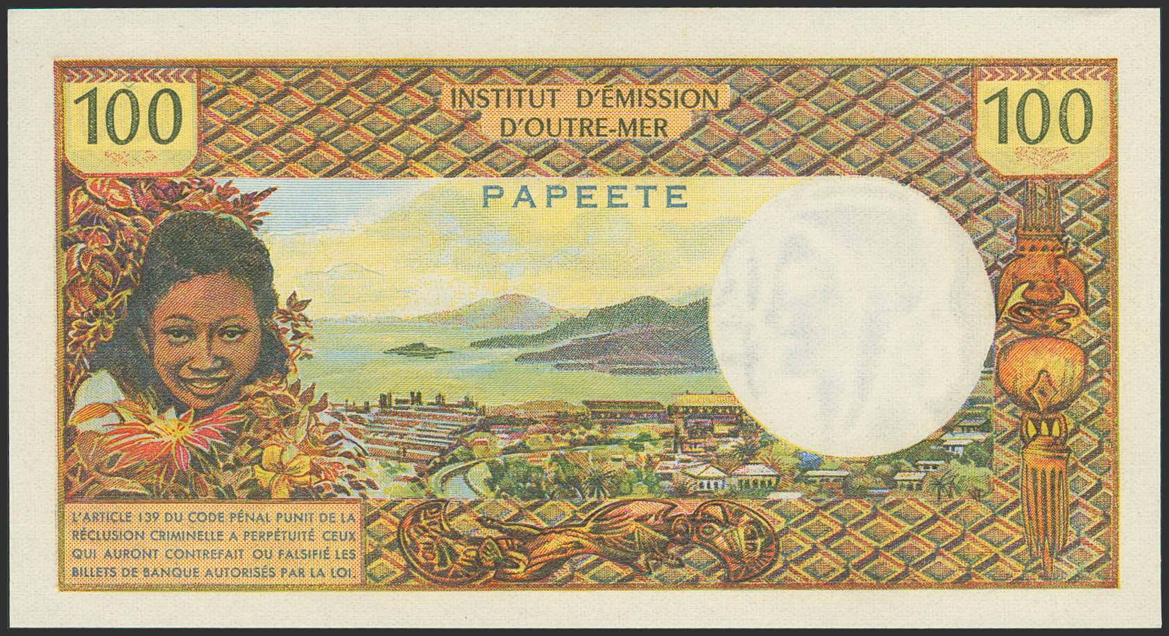 TAHITI. 100 Francs. 1973. (Pick: 24b). Uncirculated.