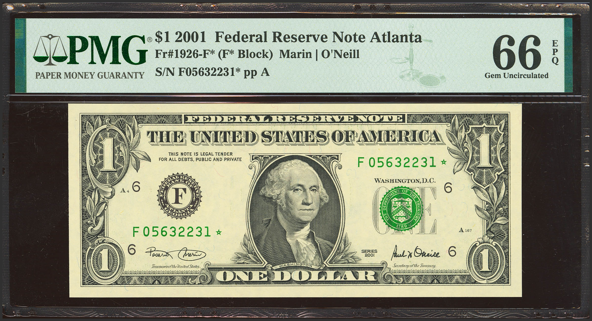 UNITED STATES. 1 Dollar. 2001. (FR: 1926-F*). PMG66EPQ.