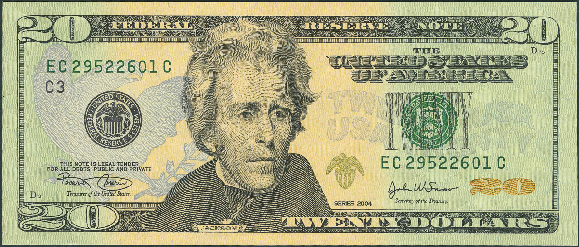 UNITED STATES. 20 Dollars. 2004. (Pick: 521a). Uncirculated.