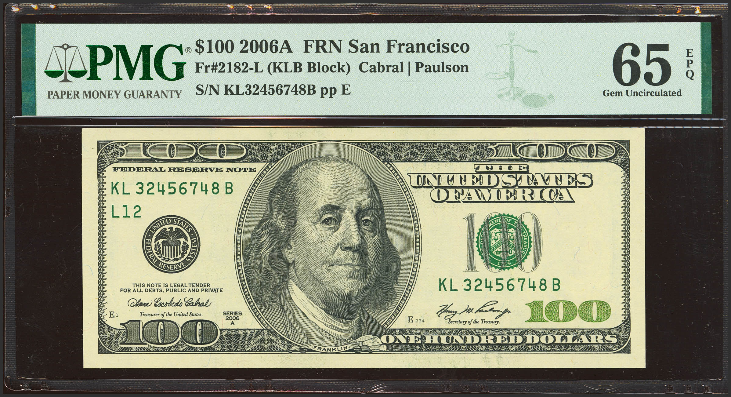 UNITED STATES. 100 Dollars. 2006A. (FR: 2182-L). PMG65EPQ.