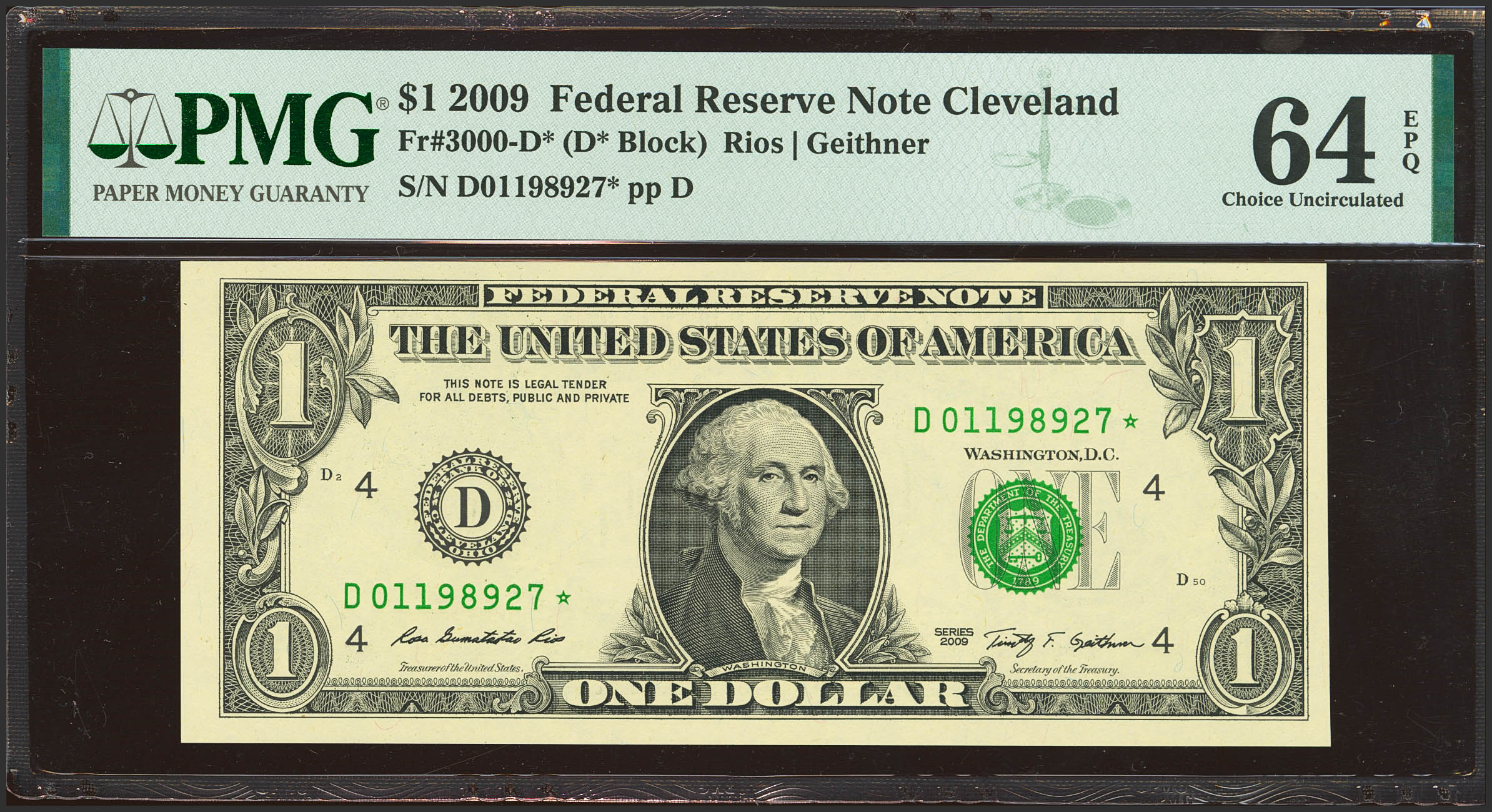 UNITED STATES. 1 Dollar. 2009. (FR: 3000-D*). PMG64EPQ.