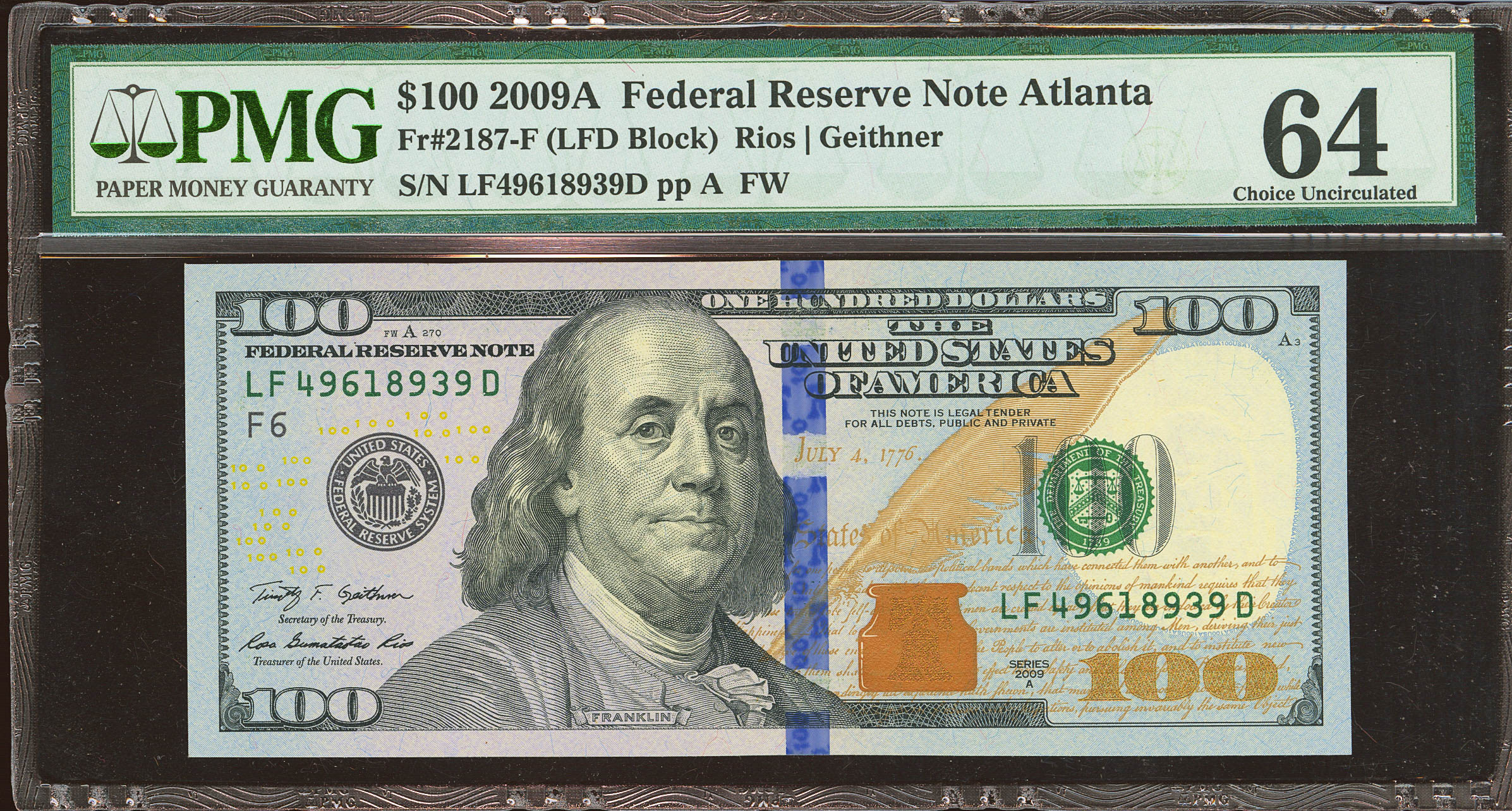 UNITED STATES. 100 Dollars. 2009A. (FR: 2187-F). PMG64.