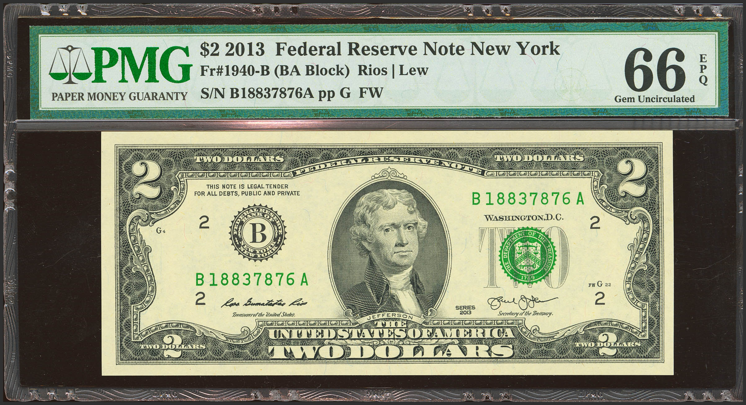 UNITED STATES. 2 Dollars. 2013. (FR: 1940-B). PMG66EPQ.