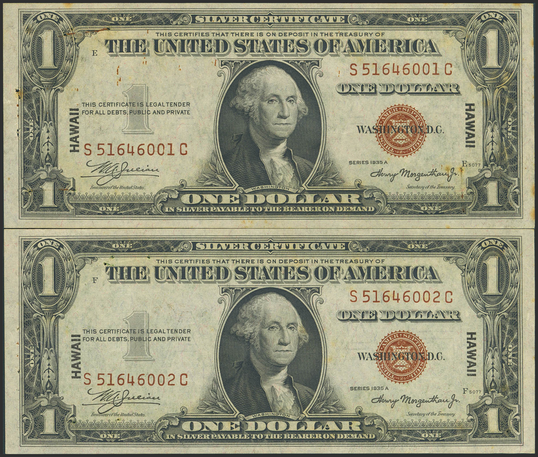 HAWAII. 1 Dollar. Correlative pair. 1935. (Pick: 36a). Pinholes. Extremely Fine.