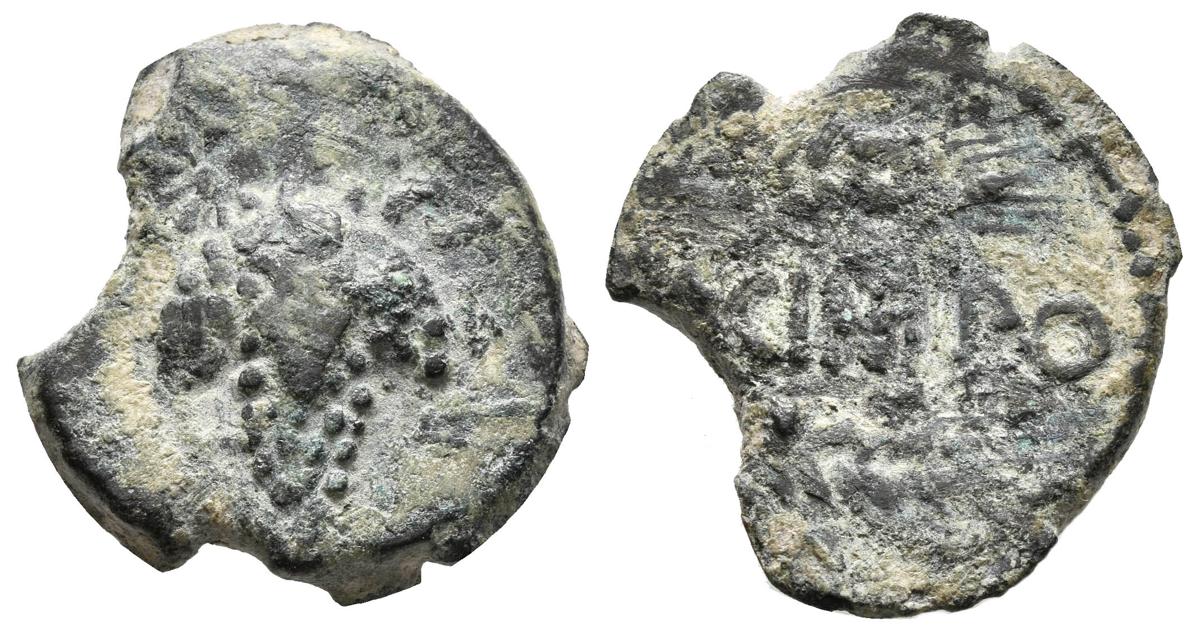 ACINIPO. As. 120-50 a.C. Ronda (Málaga). A/ Racimo de uvas decorado con estrella en la parte superior izquierda. R/ Dos espigas a derecha, entre ellas ACINIPO. FAB-48. Ae. 7,16g. MBC/BC+.