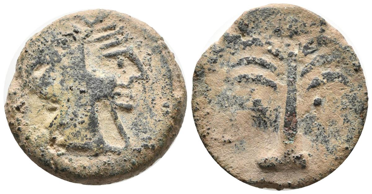 BARIA. As. 200-100 a.C. Villaricos (Almería). A/ Cabeza de Heracles con piel de león a derecha. R/ Palmera con frutos. FAB-213. Ae. 13,35g. MBC.