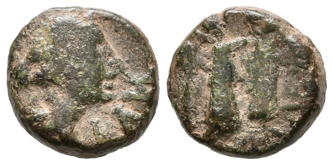 MASSALIA-GALLIA NARBONENSIS. AE, pequeño bronce. 44-43 a.C. Antipolis (Antibes) A/ cabeza de Venus a derecha. R/ Victoria a derecha coronando trofeo. La ciudad de Antípolis (Antibes) comenzó a acuñar bronces bajo el gobierno de Lépido, gobernador de la Gallia Narbonensis durante 44-43 d.C. La leyenda que aparece en estas monedas es ANTI-LEPI, recuerda que la ciudad recibió el derecho latino y el estado de colonia latina resultando y fundando Colonia ANTIpolitana LEPIDA. BMC 260; RPC 531. Ae. 1,99g. MBC-. Rara.
