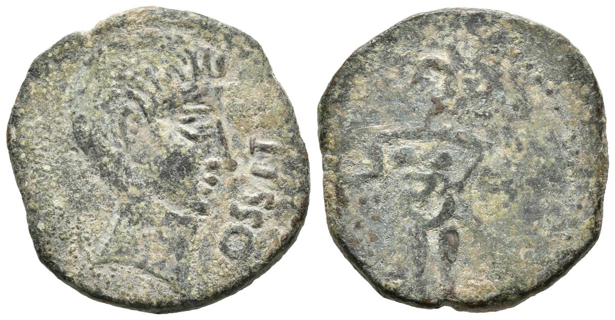 OSET. As. 120-20 a.C. San Juan de Aznalfarache (Sevilla). A/ Cabeza a derecha, delante OSSET. R/ Genio de pie con racimo de uvas a izquierda. FAB-1949. Ae. 7,15g. MBC/MBC-.