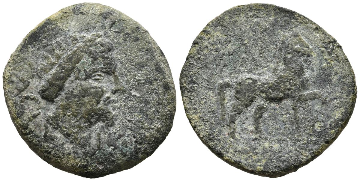 SACILI. As. 120-50 a.C. Pedro Abad (Córdoba). A/ Cabeza a derecha, detrás y debajo (SACILI). R/ Caballo al paso a derecha. FAB-2019. Ae. 19,26g. MBC-. Escasa.