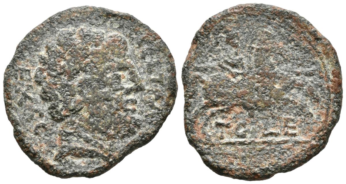 TOLE. As. 50-20 a.C. Toledo. A/ Cabeza masculina barbada con collar a derecha, alrededor EX SC-CELTAMB. R/ Jinete lancero a derecha, debajo sobre línea leyenda TOLE. FAB-2407. Ae. 9,62g. BC+. Rara.