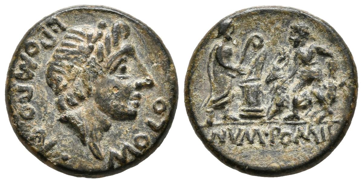 L. POMPONIUS MOLO. Denario forrado. 97 a.C. Roma. A/ Cabeza laureada de Apolo a derecha, alrededor L·POMPON·MOLO. R/ Numa Pompilius en pie a derecha sosteniendo lituus, delante altar en llamas, a la derecha victimario llevando para su sacrificio, en exergo NVMA·POMPIL. Craw 334.1; Sydenham 607. Ae. 2,98g. MBC+.