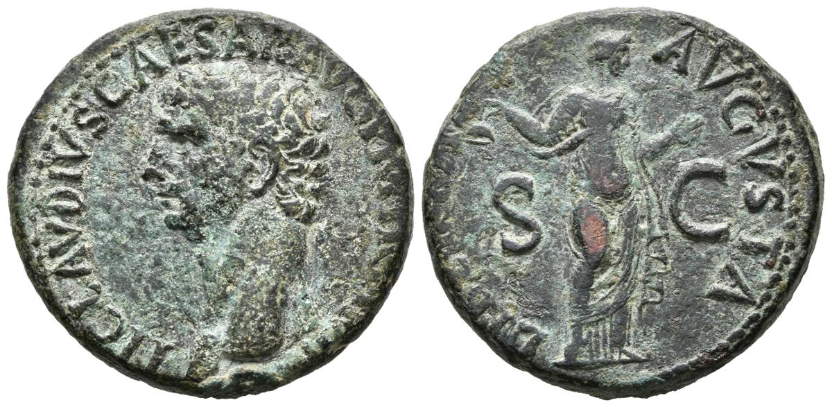 CLAUDIO. As. 42-43d.C. Roma. A/ Cabeza a izquierda. TI CLAVDIVS CAESAR AVG P M TR P IMP P P. R/ Libertas estante a derecha sosteniendo Pileus y extendiendo su mano izquierda, a ambos lados S C. LIBERTAS AVGVSTA. RIC 113. Ae. 12,73g. MBC.
