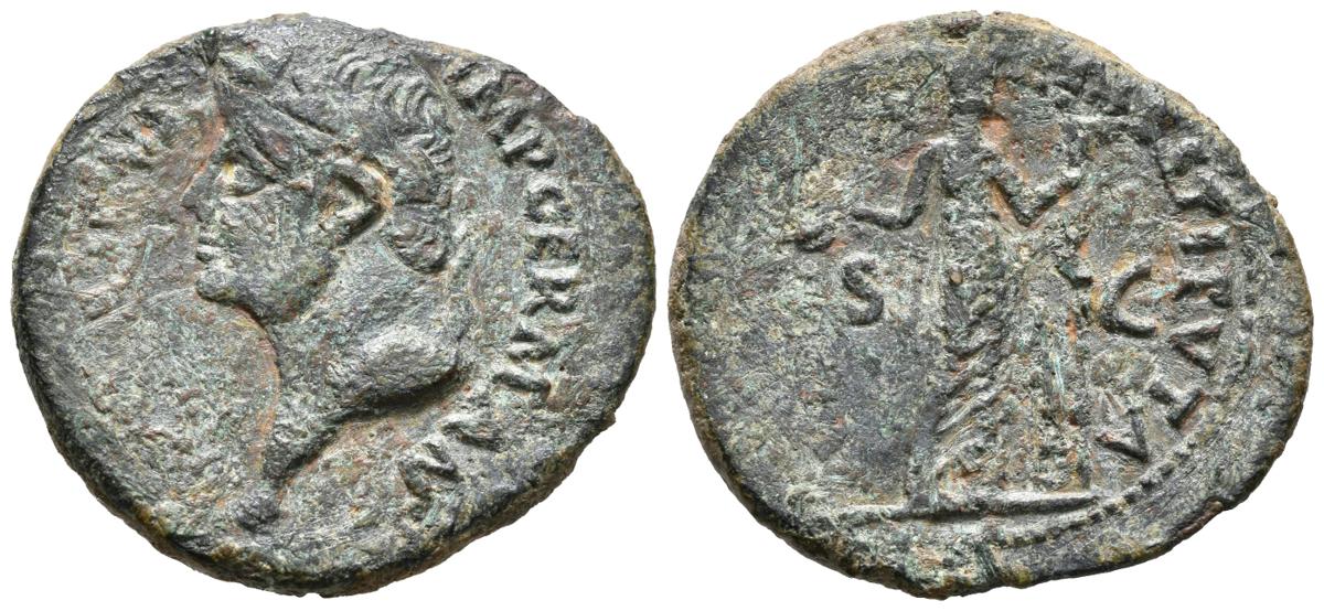 VITELIO. As. 69 d.C. Roma. A/ Busto laureado a izquierda con cuello terminado en globo. VITELLIVS IMP GERMAN. R/ Libertas estante a derecha portando pilus y túnica larga, a ambos lados S C. LIBERTAS RESTITVTA. RIC 43. Ae. 8,75g. BC+.