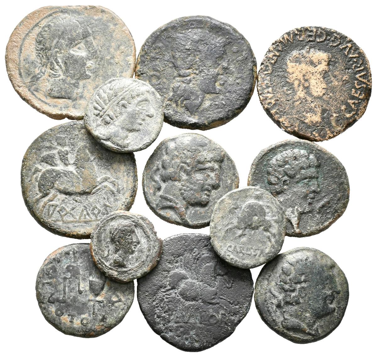HISPANIA ANTIGUA. Lote compuesto por 12 bronces de las cecas: Arcedurgi, Bolscan, Carissa, Cástulo, Celse, Colonia Patricia, Emporitón, Ercavica, Secaisa y Valentia. Ae. A EXAMINAR.