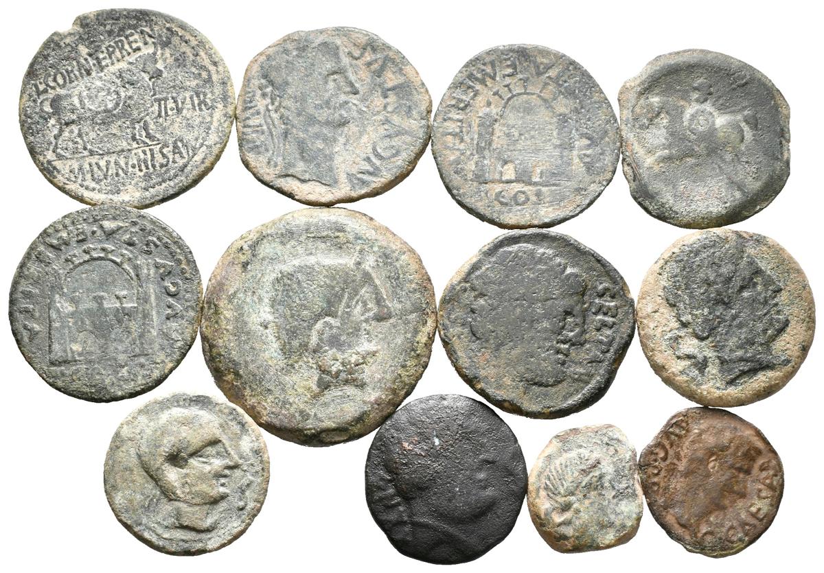 HISPANIA ANTIGUA. Lote compuesto por 12 Bronces de las cecas de Tole, Corduba, Conterbia Carbica, Ercavica, Cástulo, Icalcunscen, Emerita Augusta, Carmo, Bolscan y Celsa. Ae. A EXAMINAR.