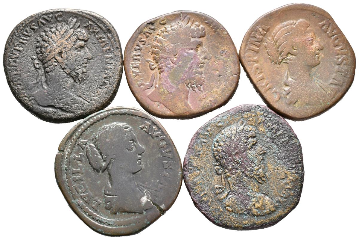 IMPERIO ROMANO. Lote compuesto por 5 Sestercios de Lucio Vero, Crispina y Lucilla, todos con reversos diferentes. Ae. A EXAMINAR.