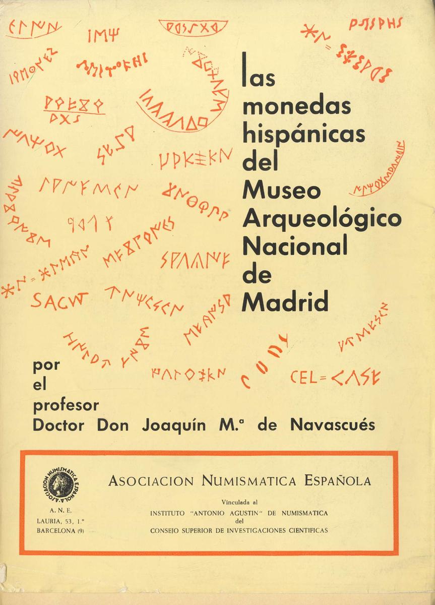 LAS MONEDAS HISPANICAS DEL MUSEO ARQUEOLOGICO NACIONAL DE MADRID. Edición: 1969. Autor: Joaquín Mª de Navascués. Bien conservado, cubierta algo fatigada. Muy escaso.