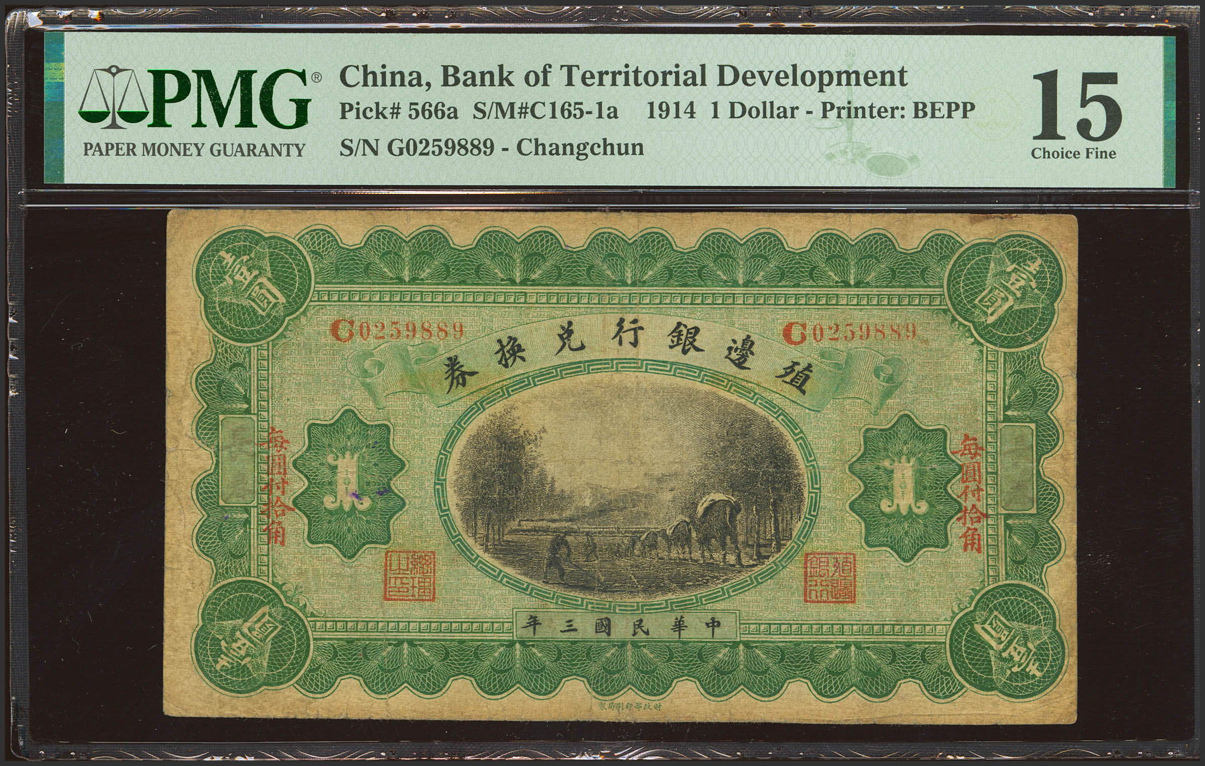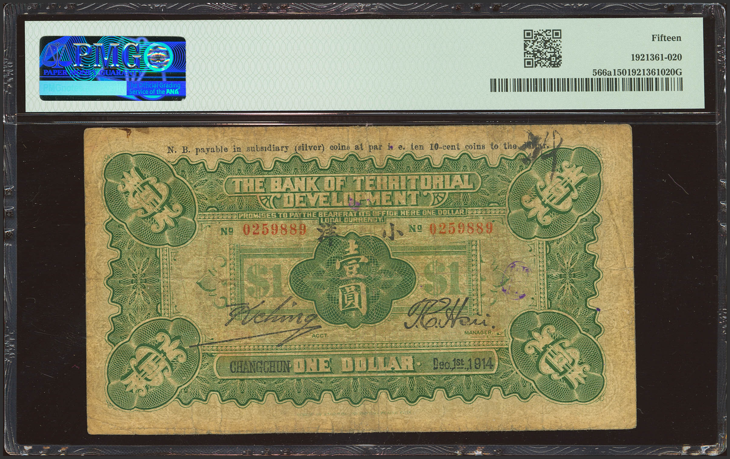 CHINA. 1 Dollar. 1 December 1914. Bank of Territorial Development. Changchun. (Pick: 566a, SM: 165-1a). PMG15.