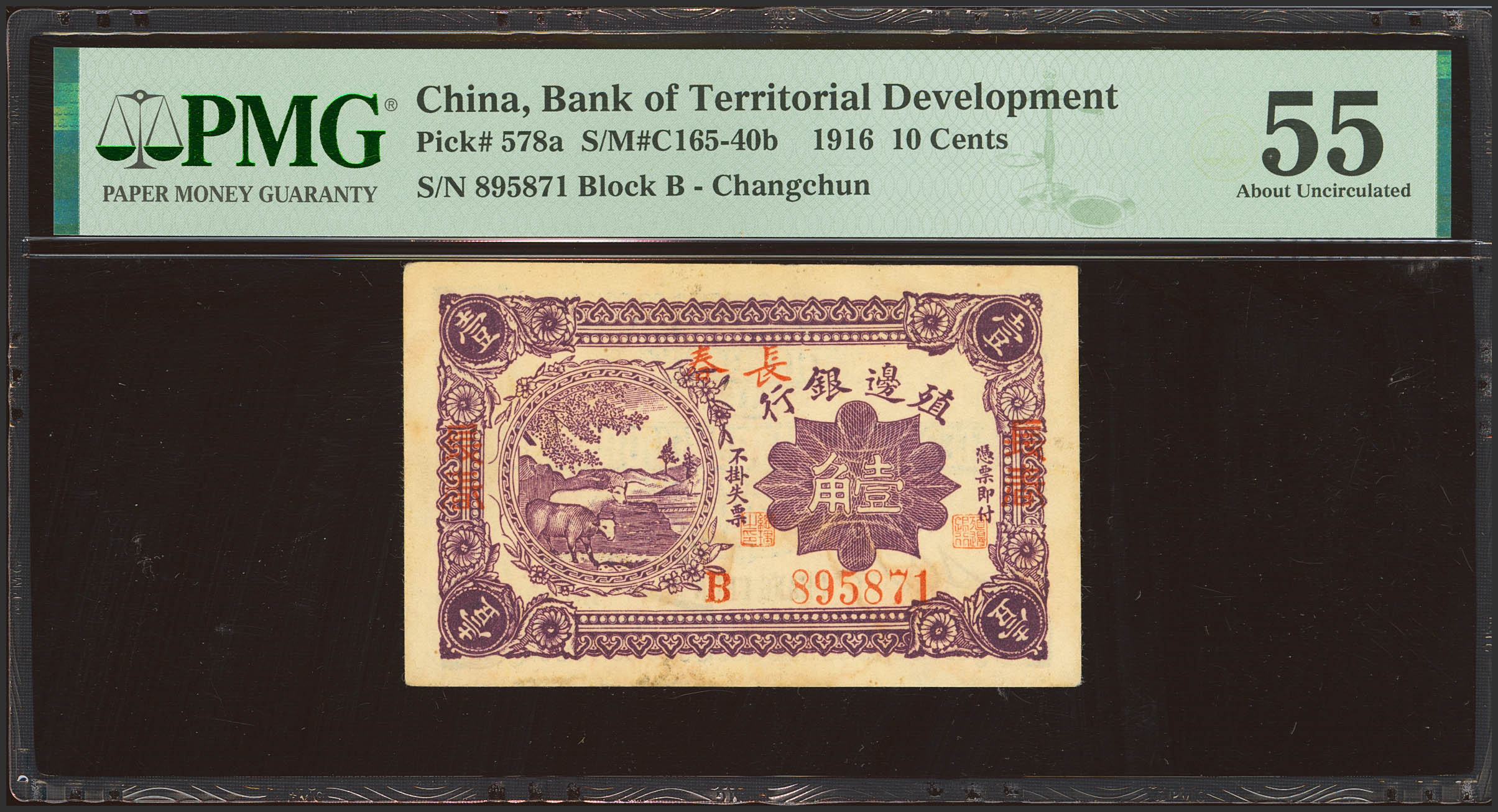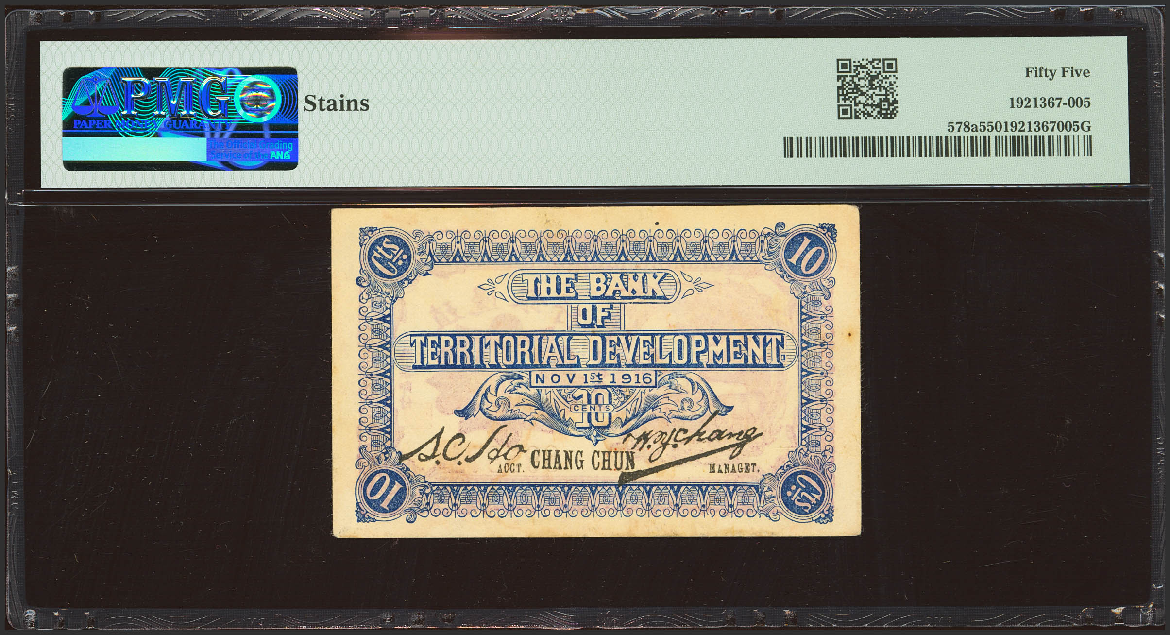 CHINA. 10 Cents. 1 November 1916. Bank of Territorial Development. Chang Chun. (Pick: 578a, SM: C165-40b). PMG55 (stains).