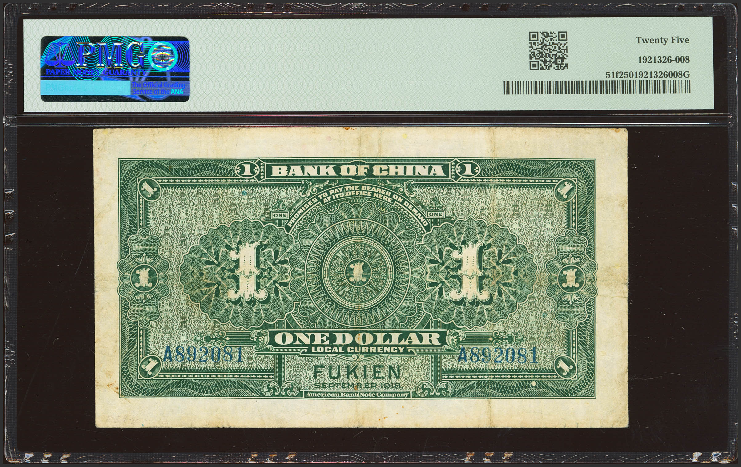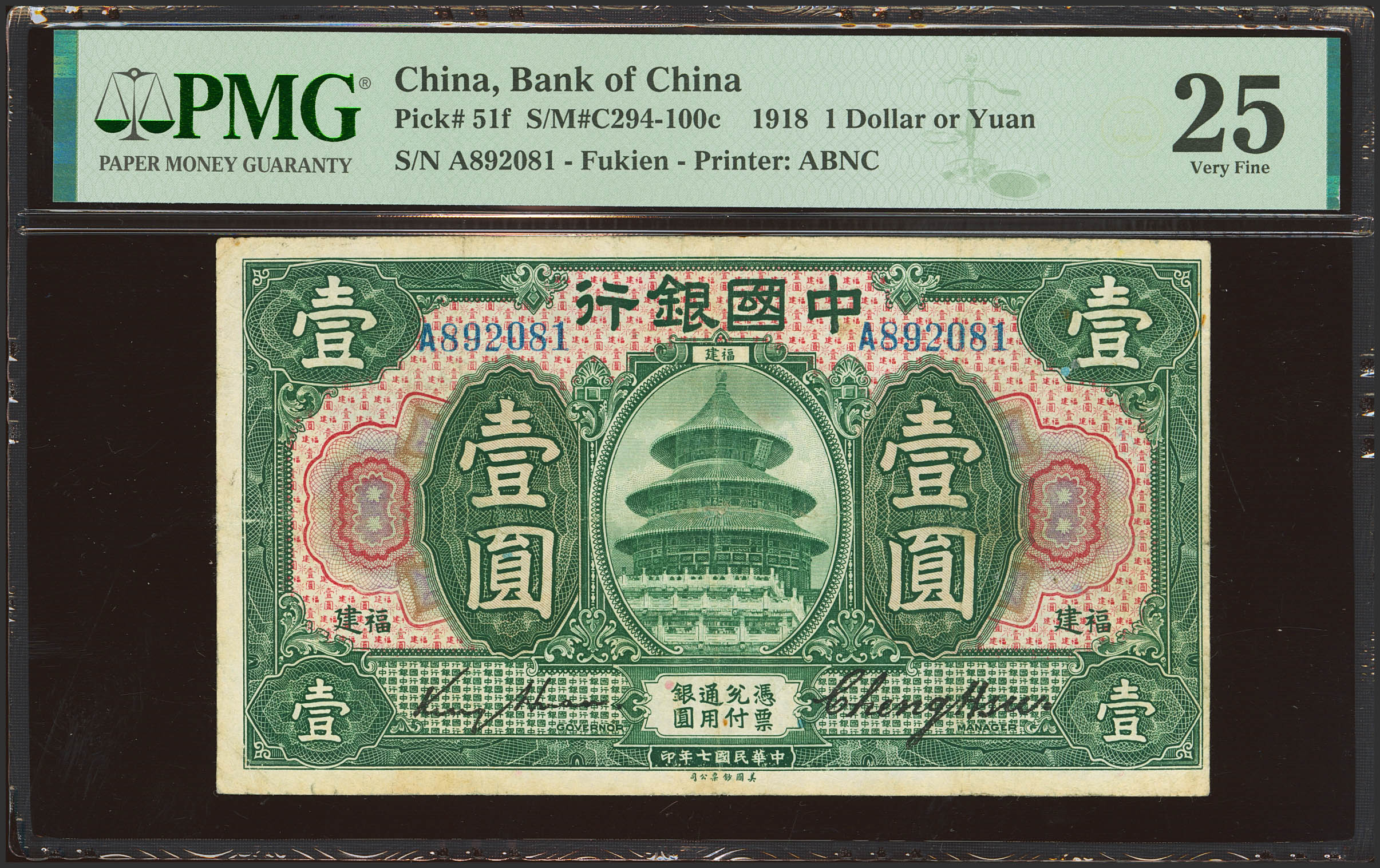 CHINA. 1 Dollar. September 1918. Bank of China. Fukien. (Pick: 51f, SM: C294-100c). PMG25.