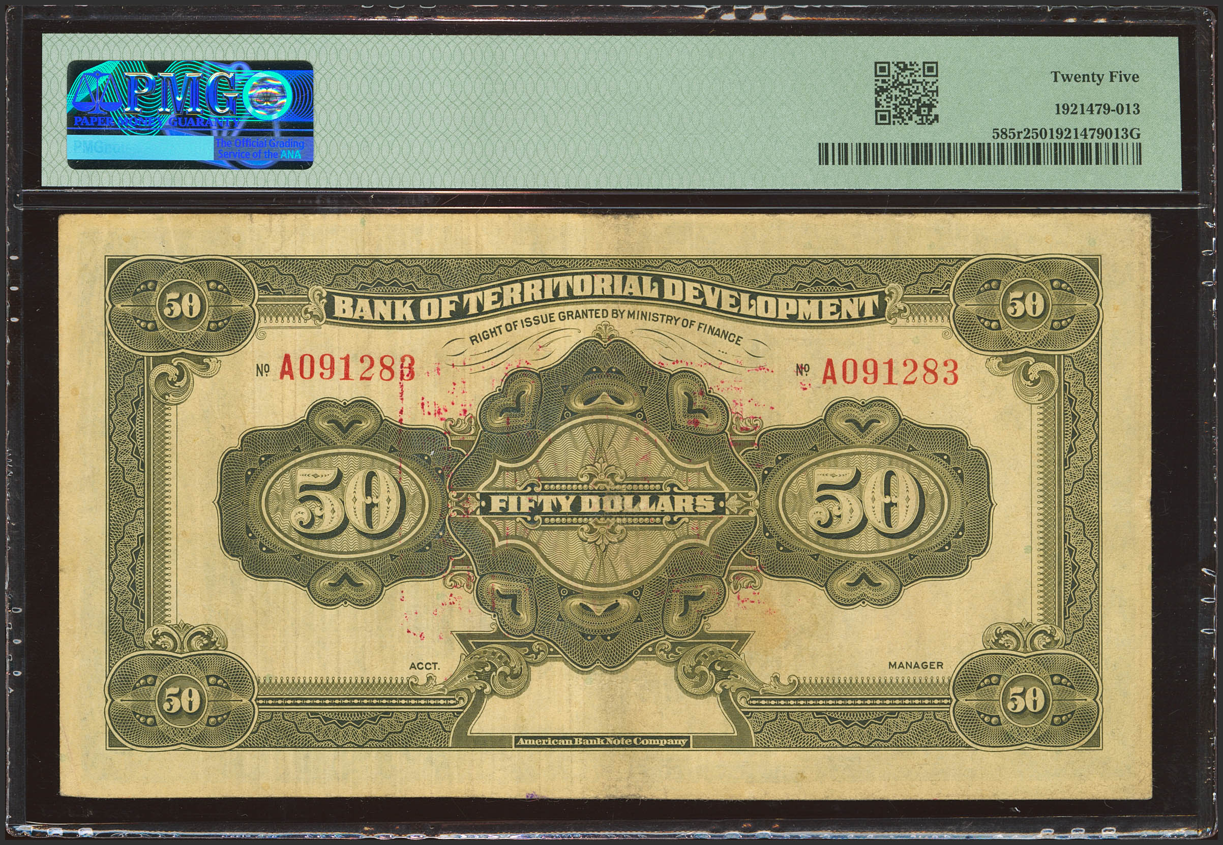 CHINA. 50 Dollars. (1916ca). Bank of Territorial Development. (Pick: 585, SM: C165-53). PMG25.