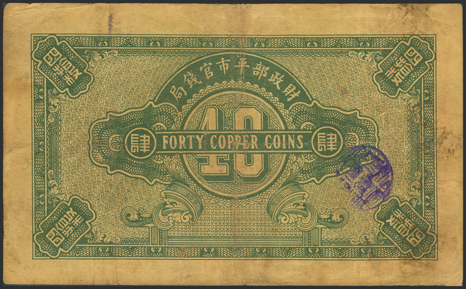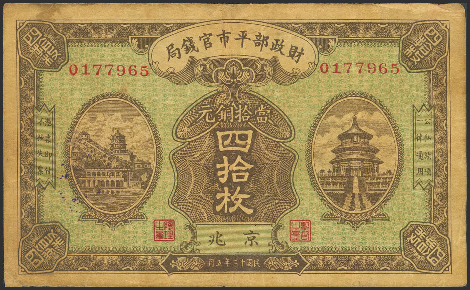 CHINA. 40 Coppers. 1923. Market Stabilization Currency Bureau. Ching Chao. (Pick: 615). Very Fine.