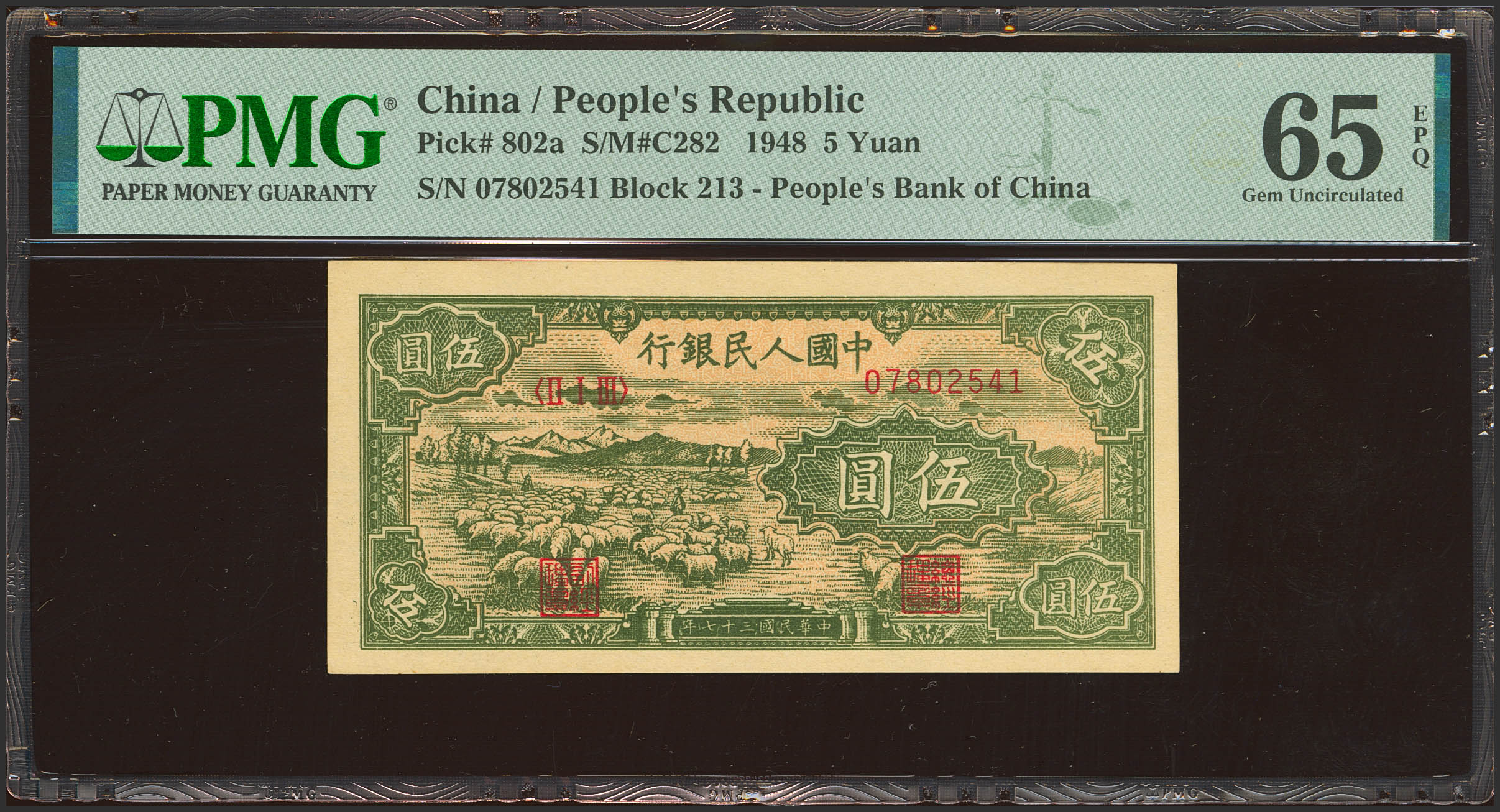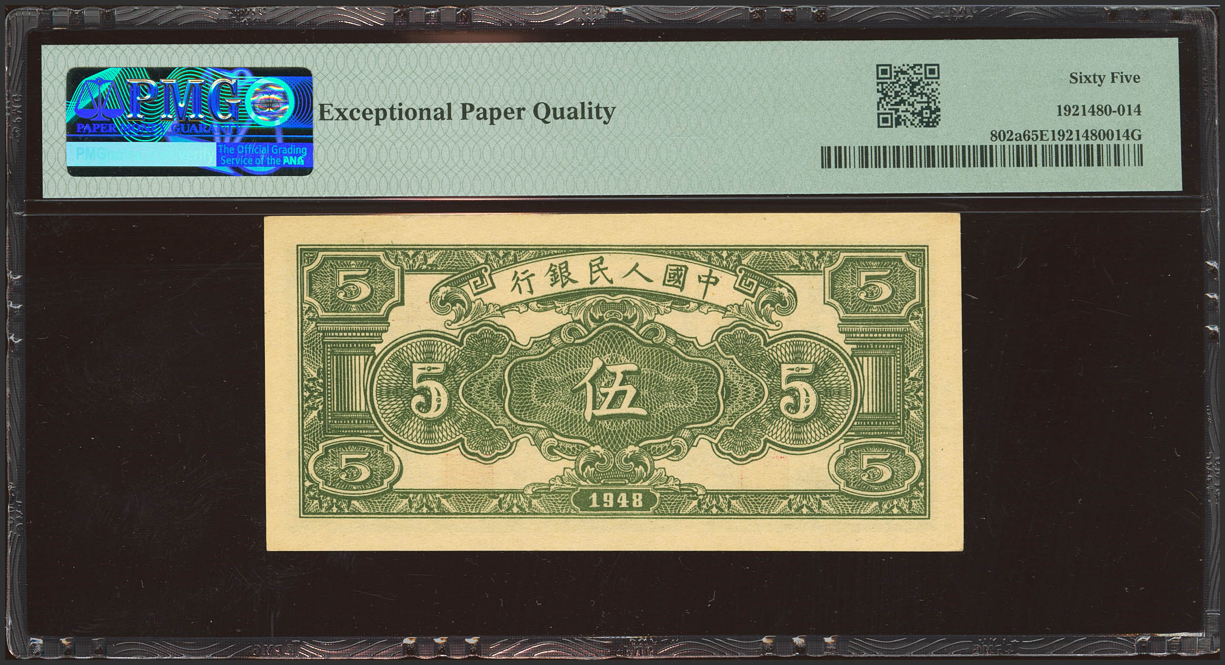 CHINA. 5 Yuan. 1948. Peoples Bank. (Pick: 802, SM: C282). PMG65EPQ.