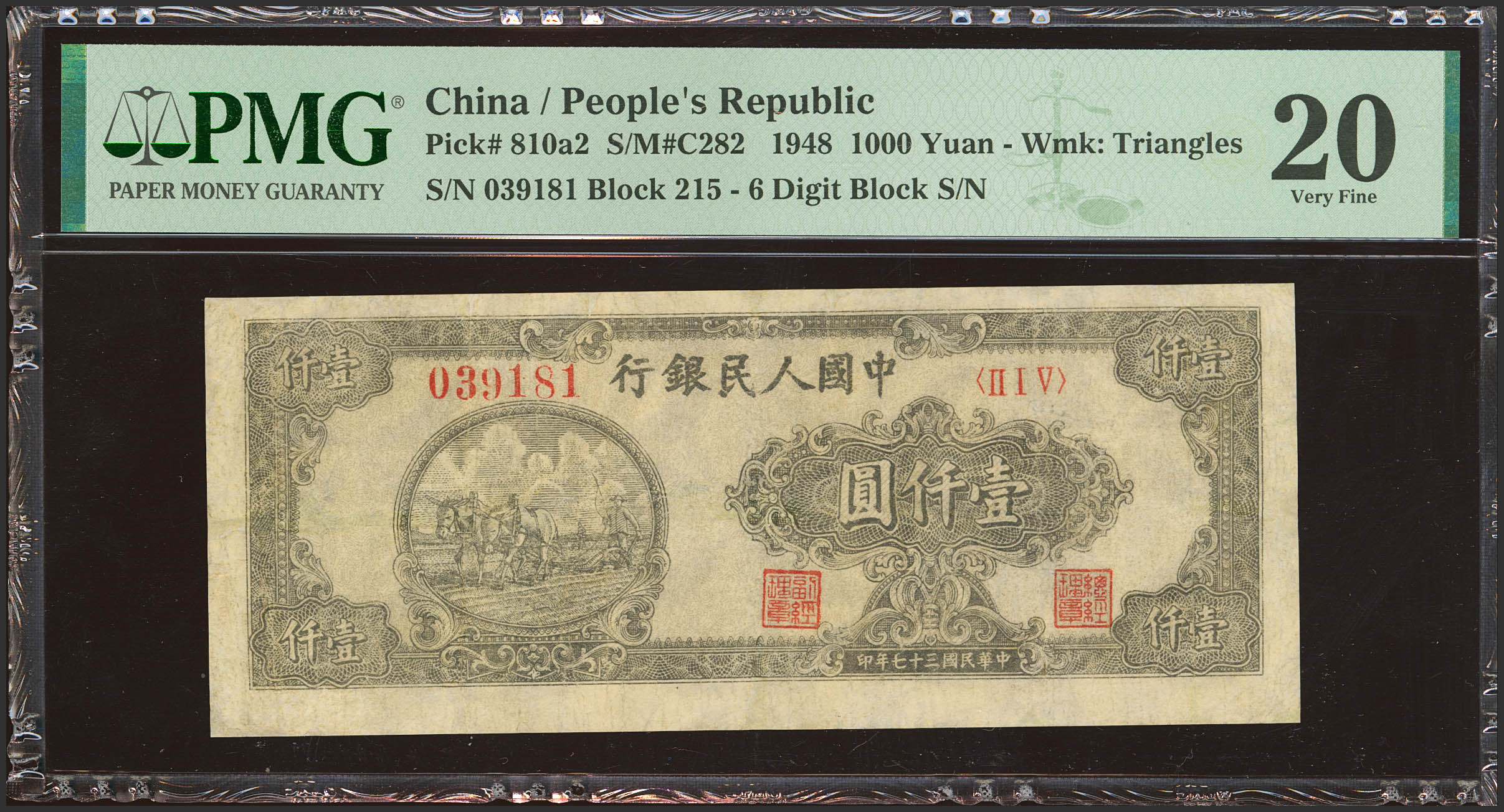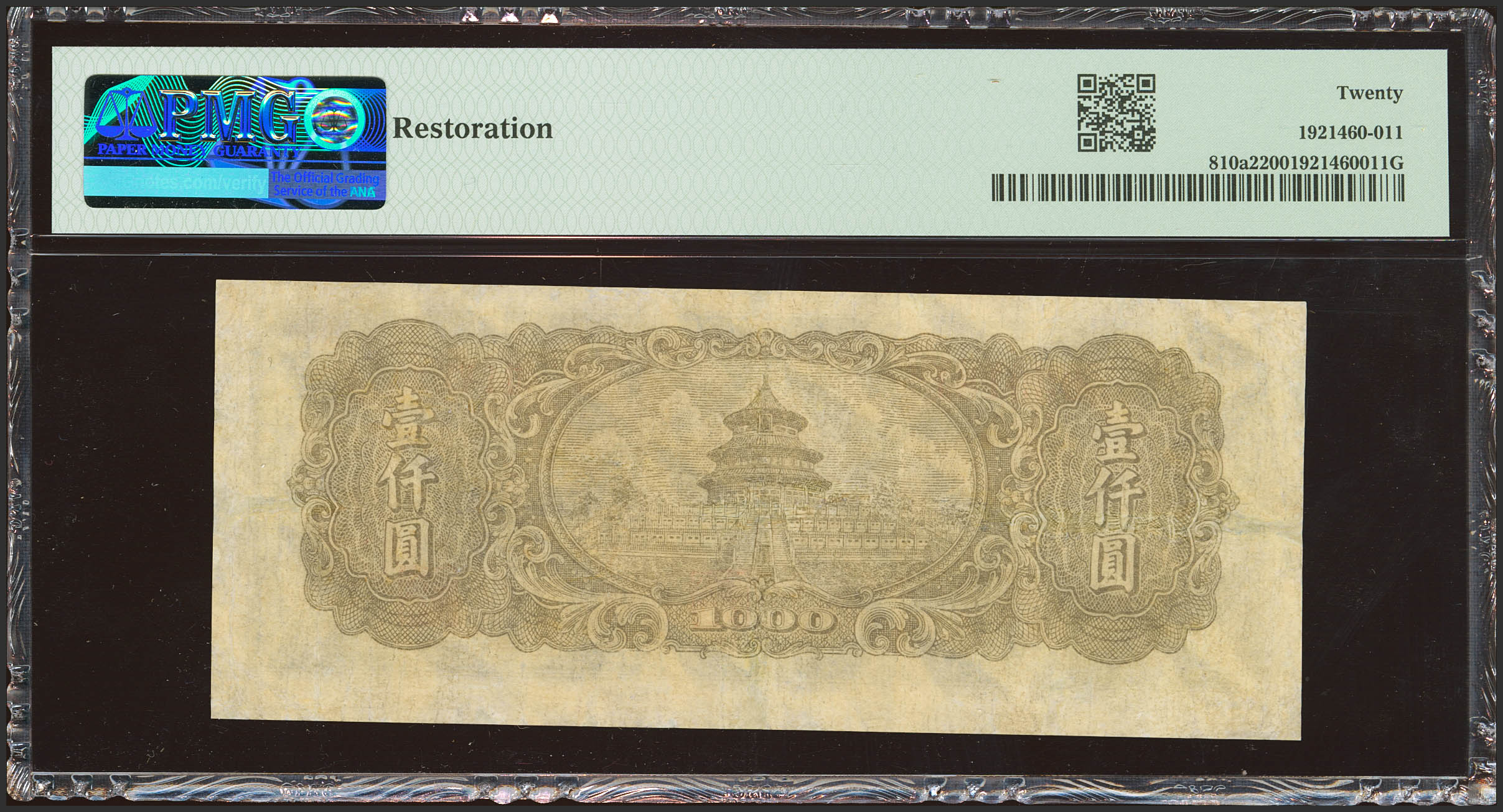 CHINA. 1000 Yuan. 1948. Peoples Bank. (Pick: 810a2, SM: C282). PMG20 (restoration).