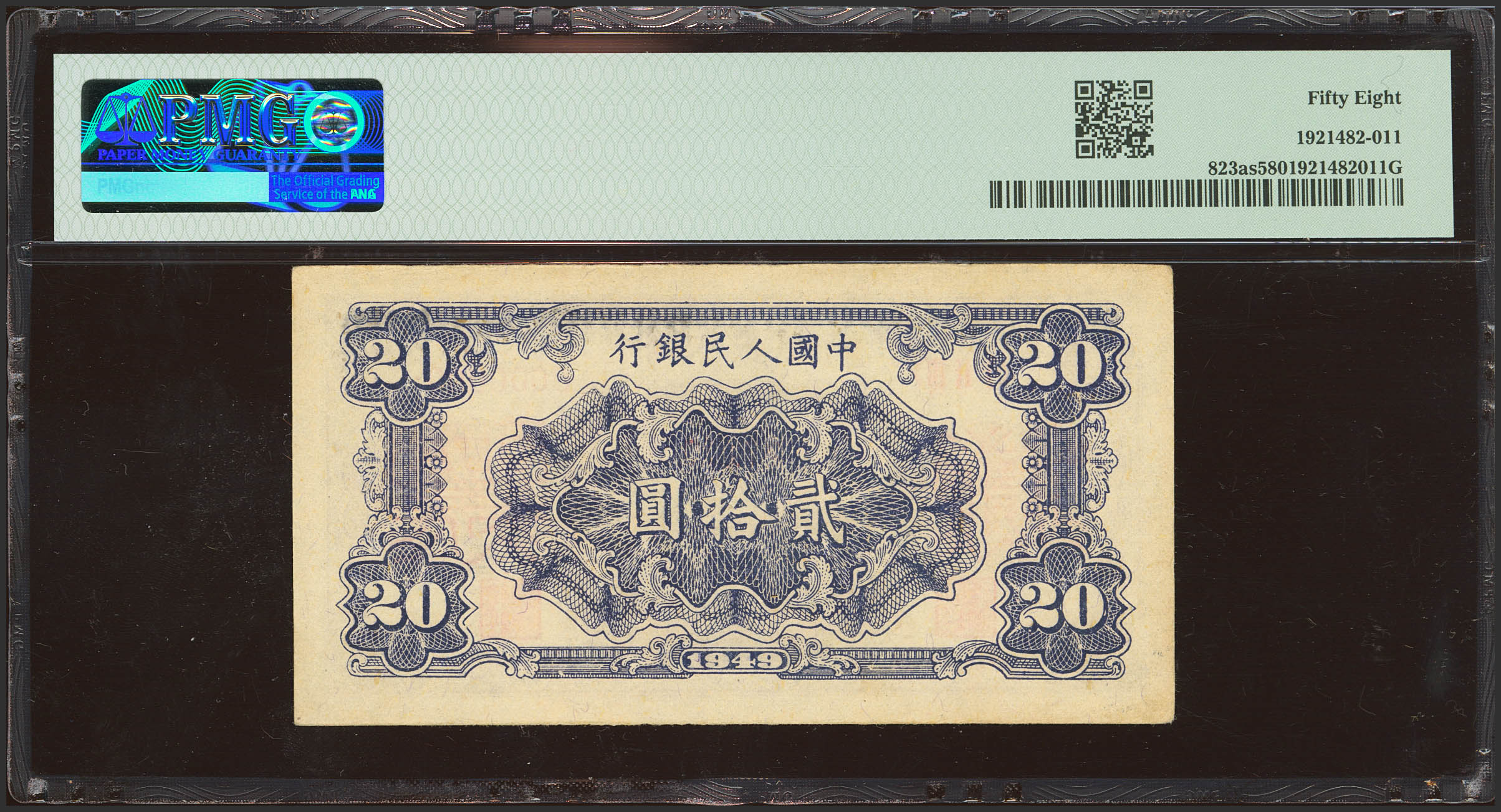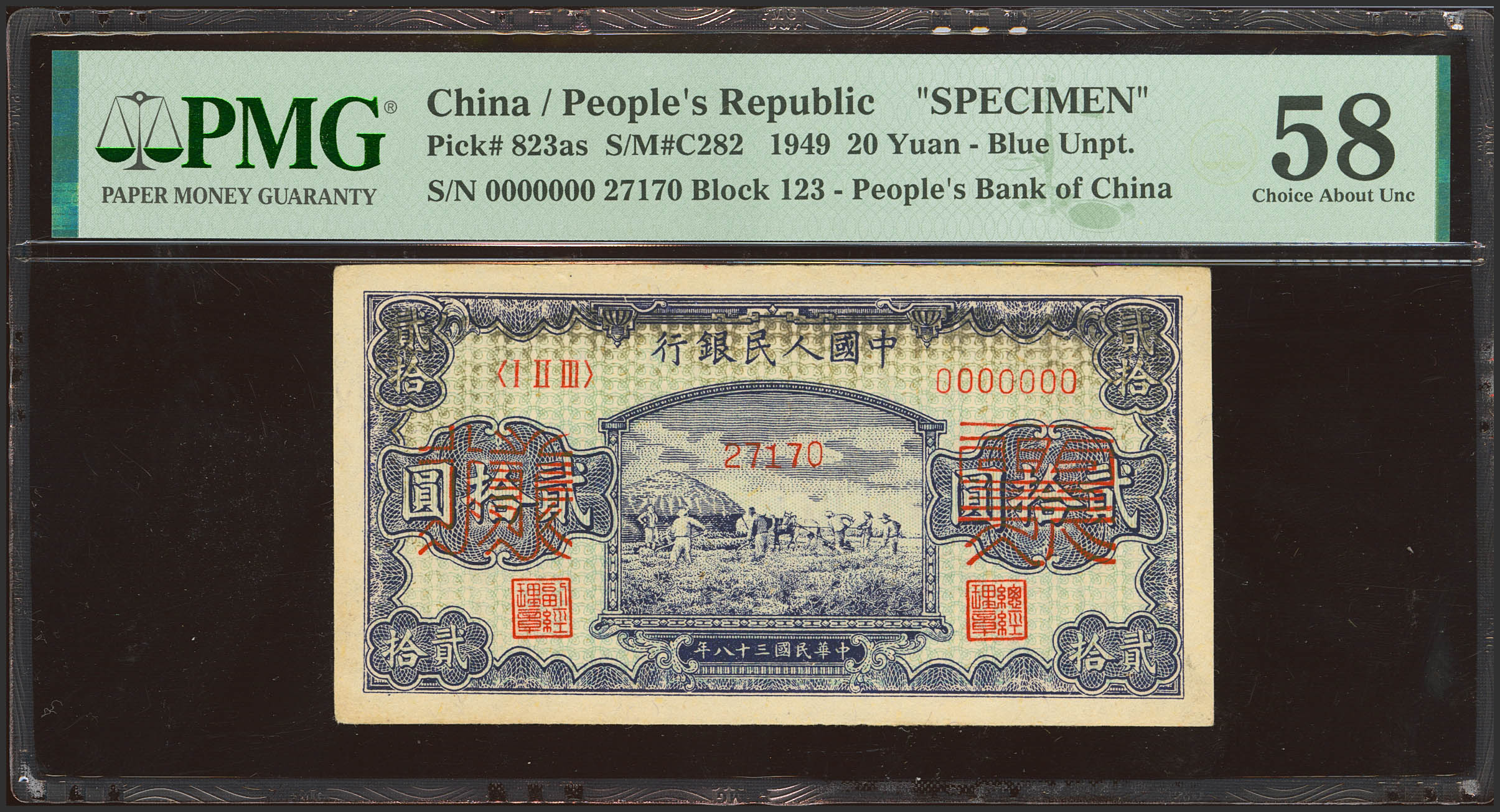 CHINA. 20 Yuan. 1949. Peoples Bank. Specimen. (Pick: 823as, SM: C282). PMG58.