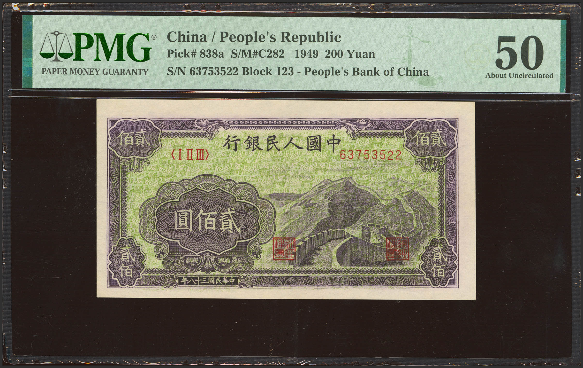 CHINA. 200 Yuan. 1949. Peoples Bank. (Pick: 838a, SM: C282). PMG50.