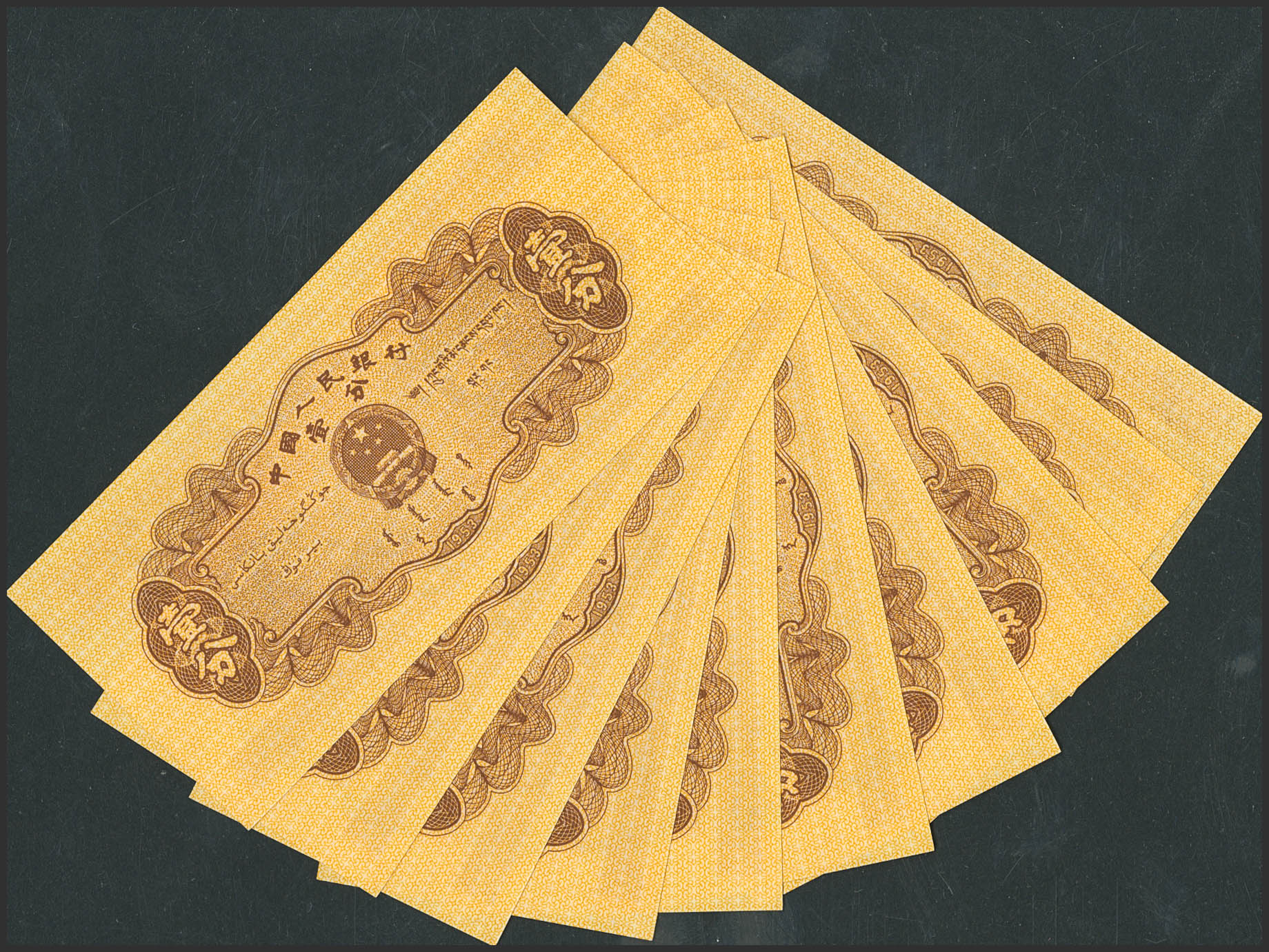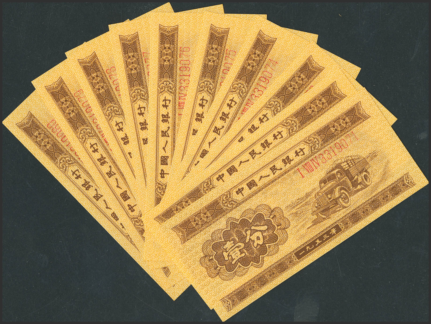 CHINA. Set of 10 notes of 1 Fen. 1953. Peoples Bank. Consecutive. (Pick: 860a). Uncirculated.