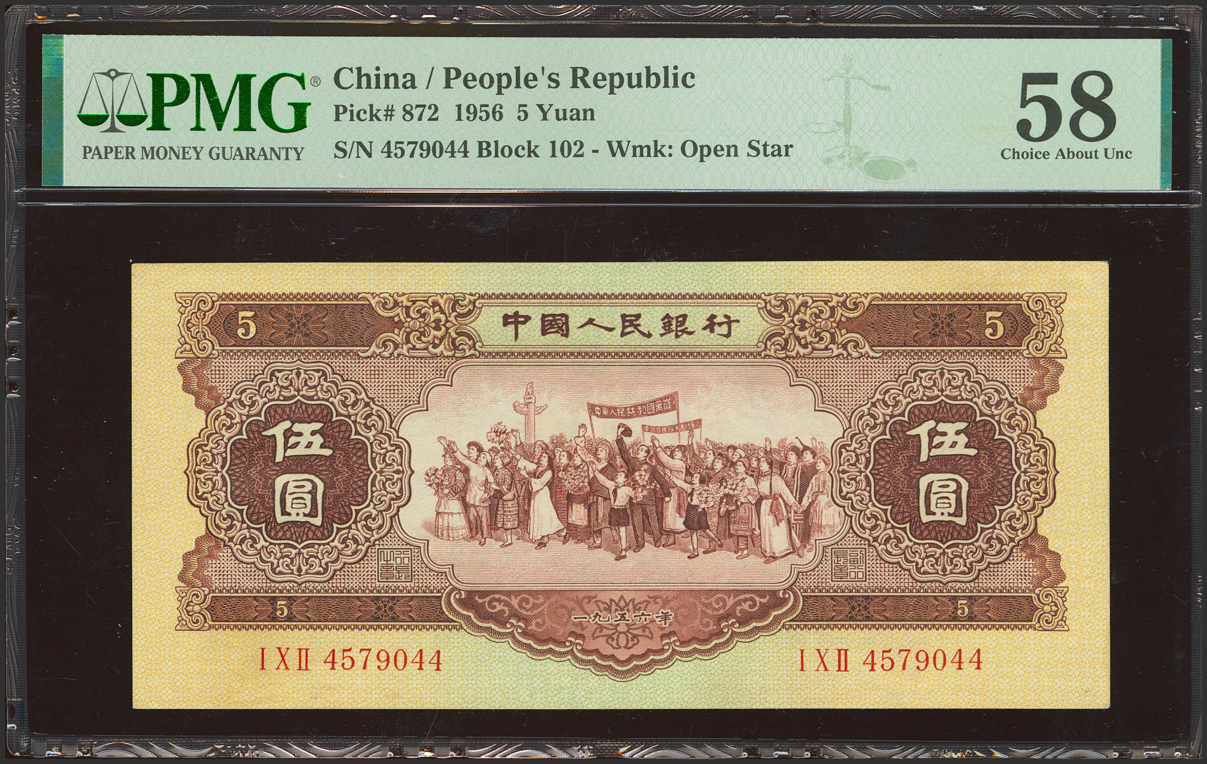 CHINA. 5 Yuan. 1956. Peoples Bank. (Pick: 872). PMG58.