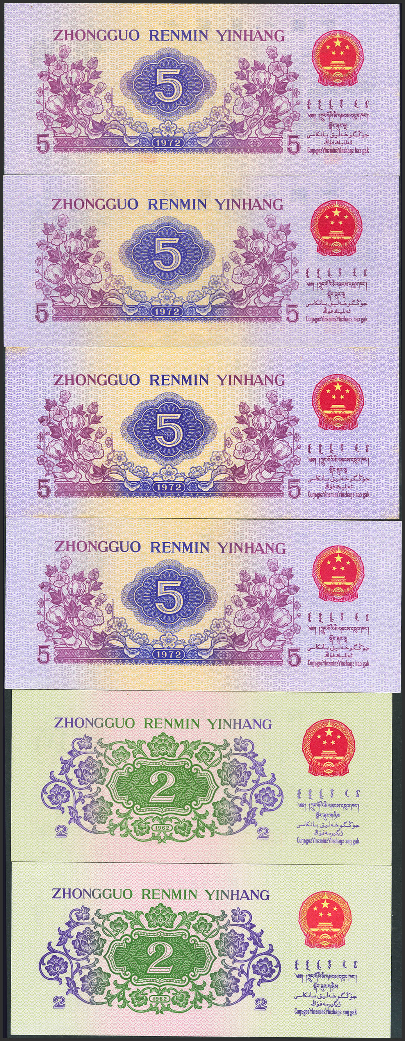 CHINA. Set of 7 notes of 1 and 5 Jiao. 1972. Peoples Bank. (Pick: 878b(1), 878c(1), 880a(2), 880c(2)). Uncirculated.
