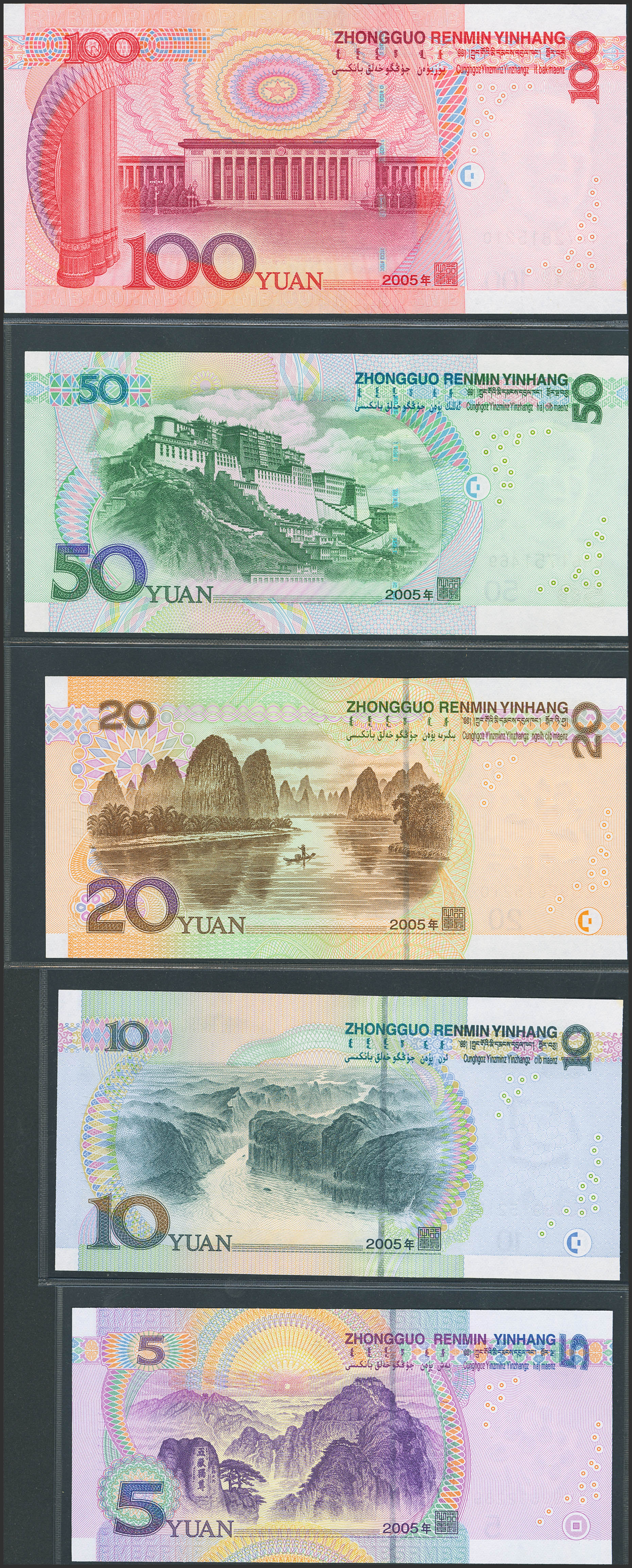 CHINA. Lot of 5 notes of Yuan. 2005. Peoples Bank of China. Complete set. (Pick: 903a, 904a, 905, 906, 907a). Uncirculated.