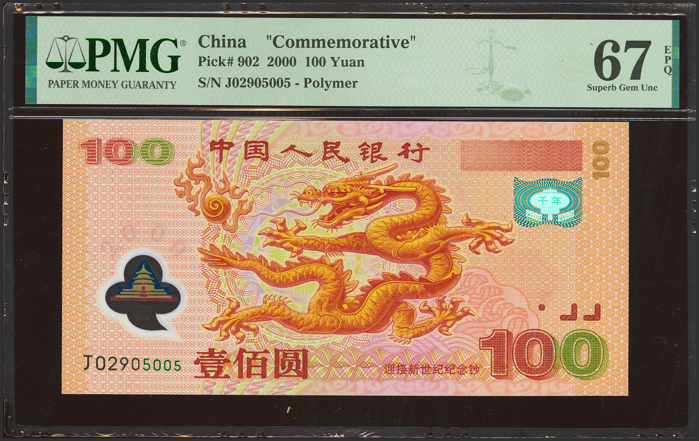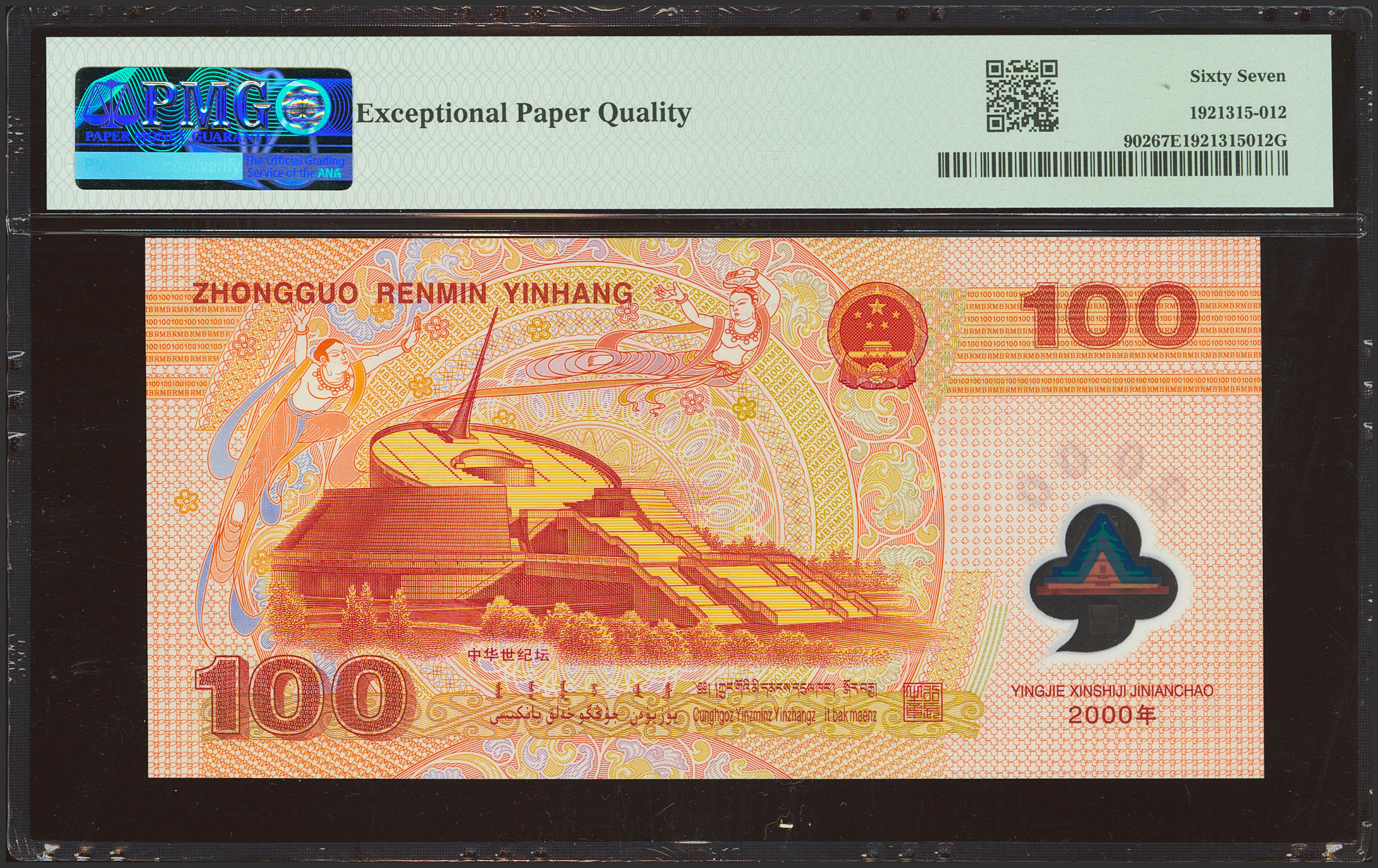 CHINA. 100 Yuan. 2000. Peoples Bank of China. Year 2000 commemorative issue. (Pick: 902b). PMG67EPQ.