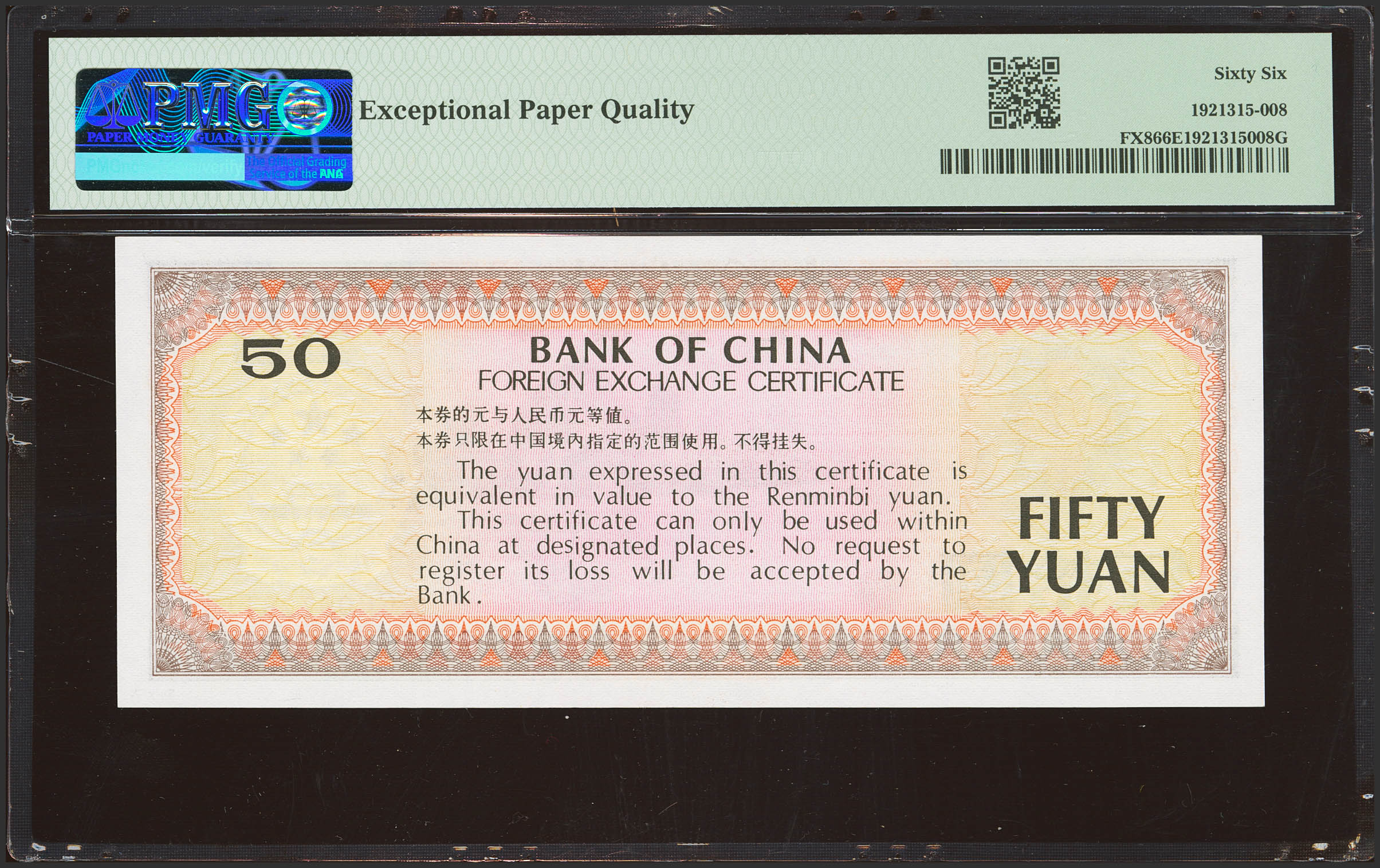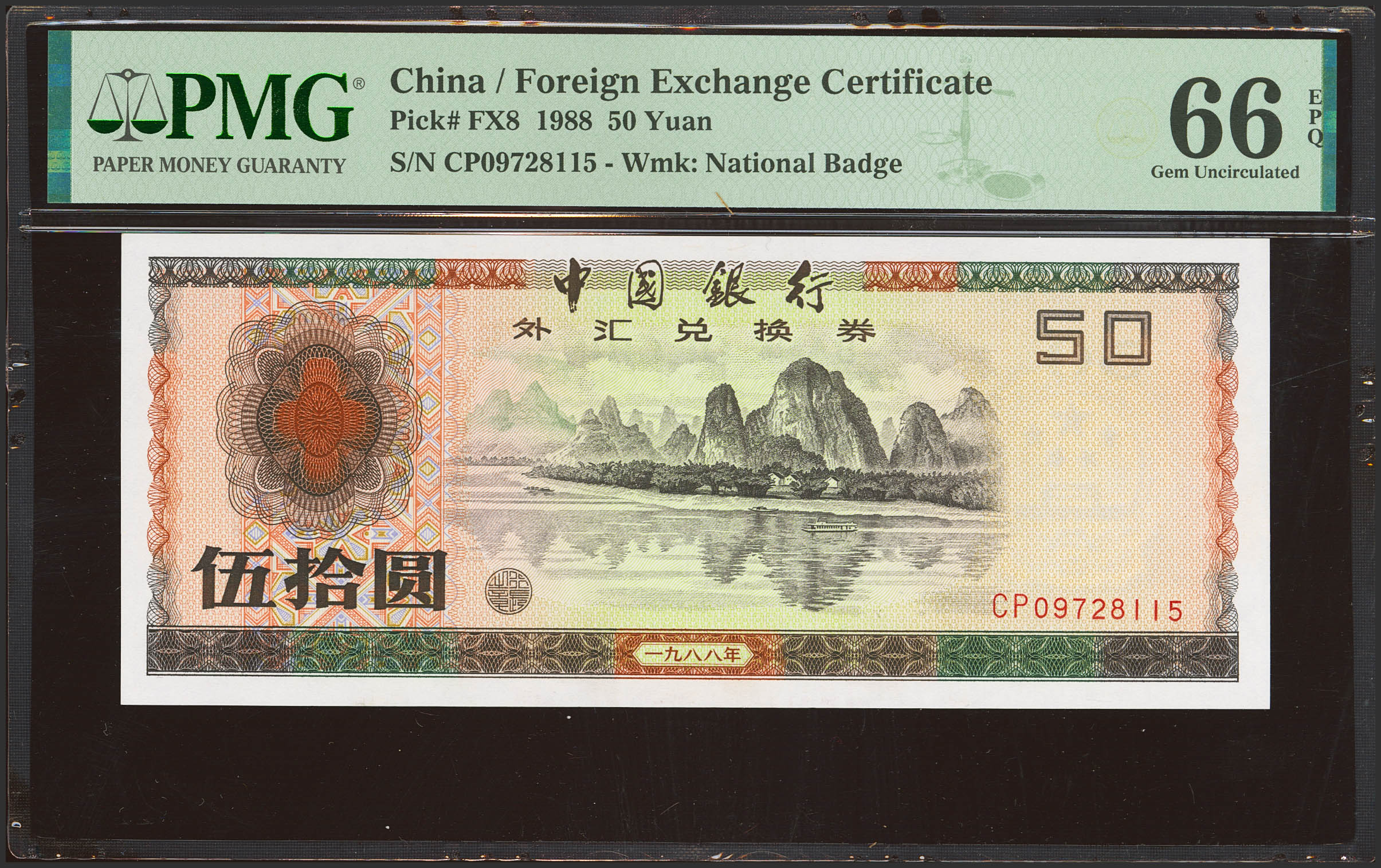 CHINA. 50 Yuan. 1988. Bank of China. Foreign Exchange Certificate. (Pick: FX8). PMG66EPQ.