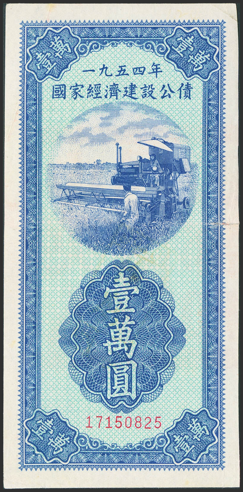 CHINA. 10000 Yuan. 1954. Government Bond. (Pick: Unlisted). Almost Uncirculated.