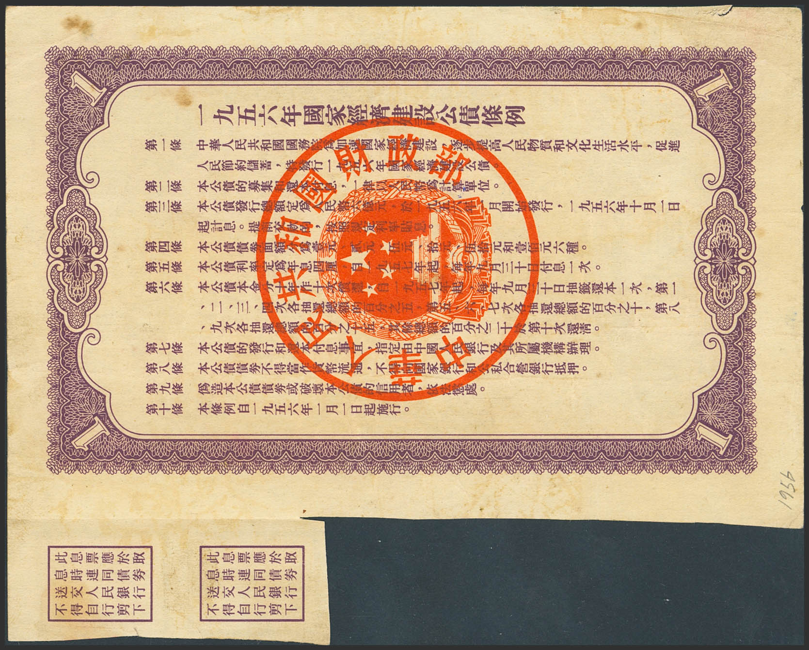CHINA. 1 Yuan. 1956. Government Bond. (Pick: Unlisted). Very Fine.
