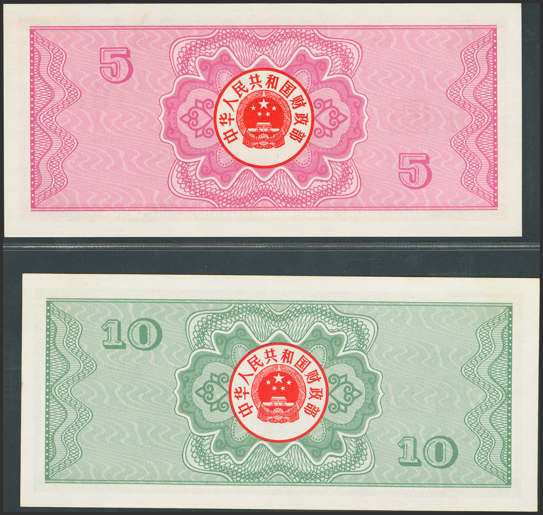 CHINA. Lot of 2 notes of 5 and 10 Yuan. 1987. Government Bonds. (Pick: Unlisted). About Uncirculated / Less Uncirculated.