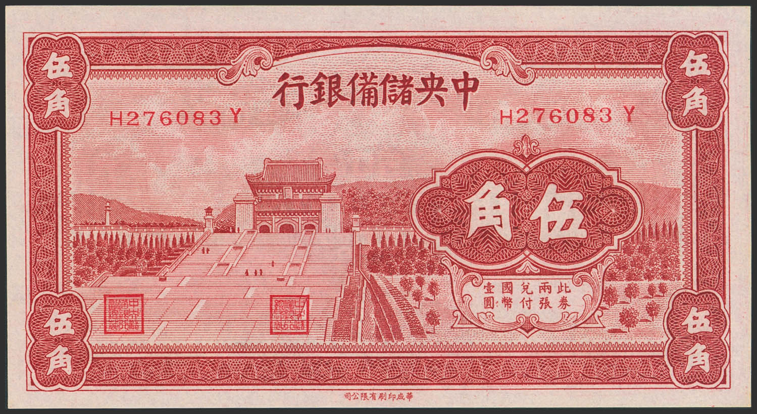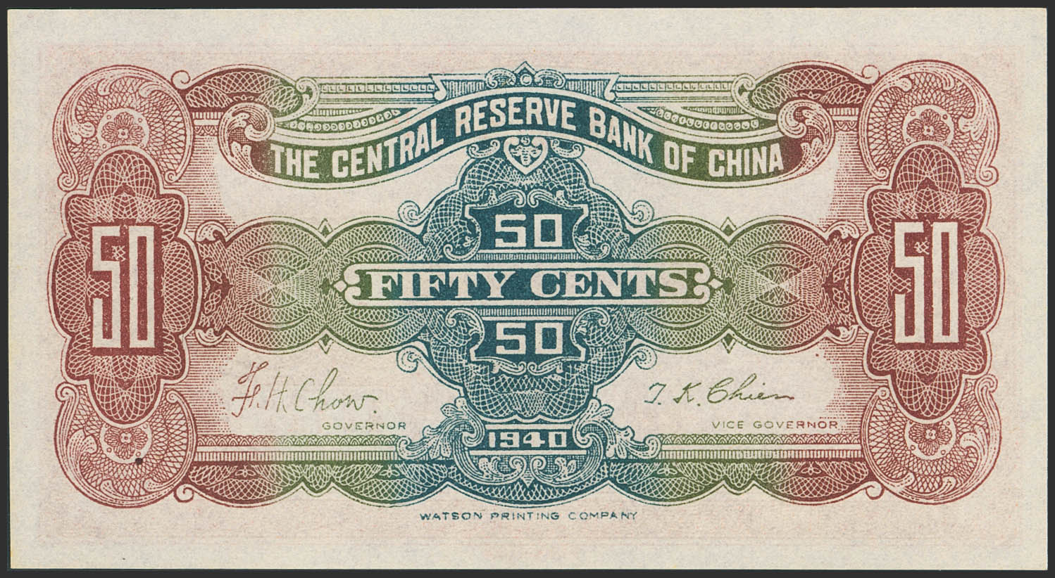 CHINA-PUPPET BANKS. 50 Cents. 1940. Central Reserve Bank. (Pick: J5). Uncirculated.