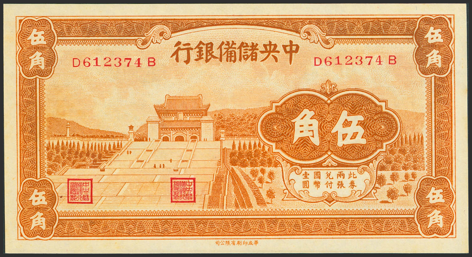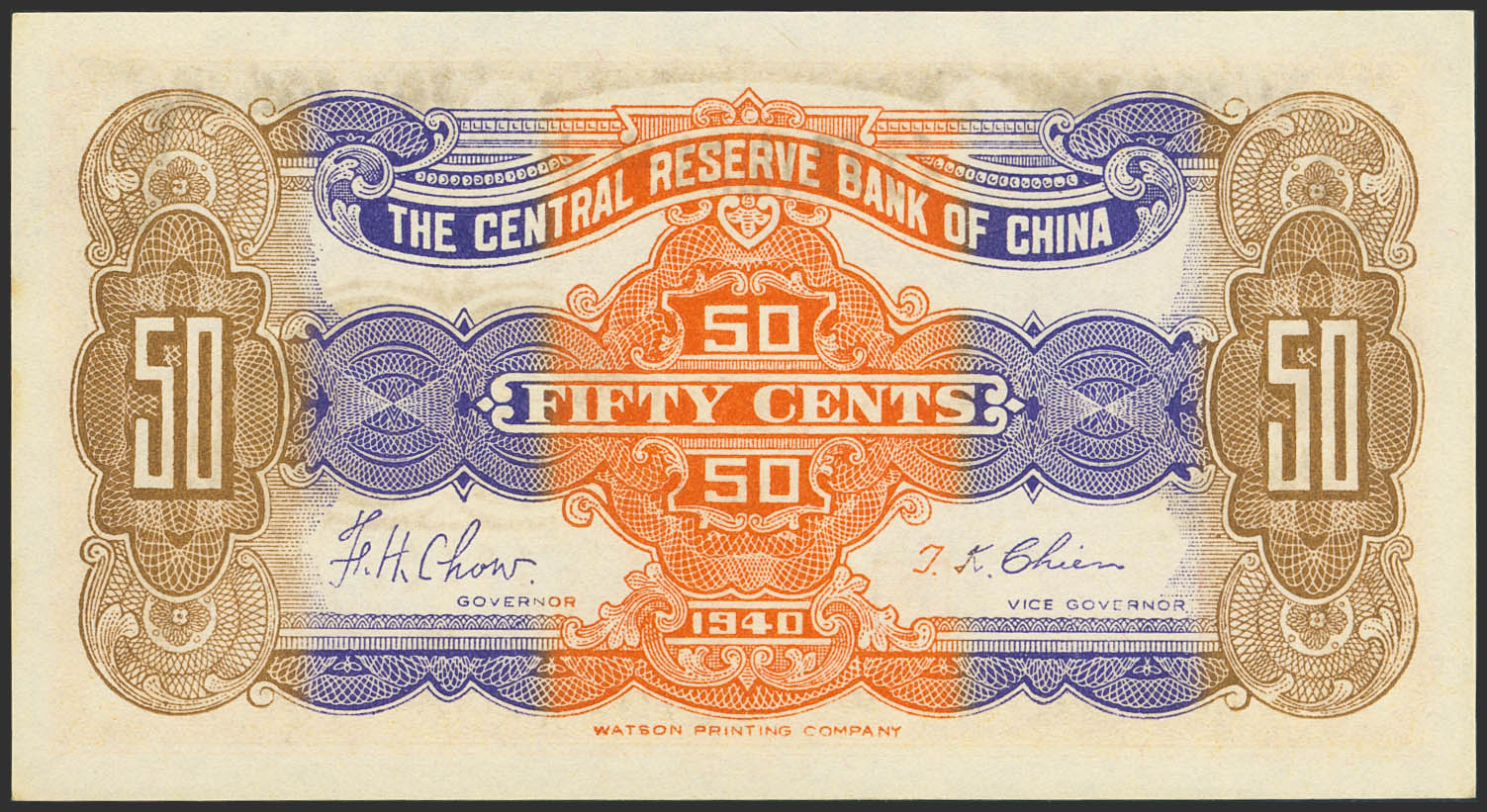 CHINA-PUPPET BANKS. 50 Cents. 1940. Central Reserve Bank. (Pick: J6). Less than Uncirculated.