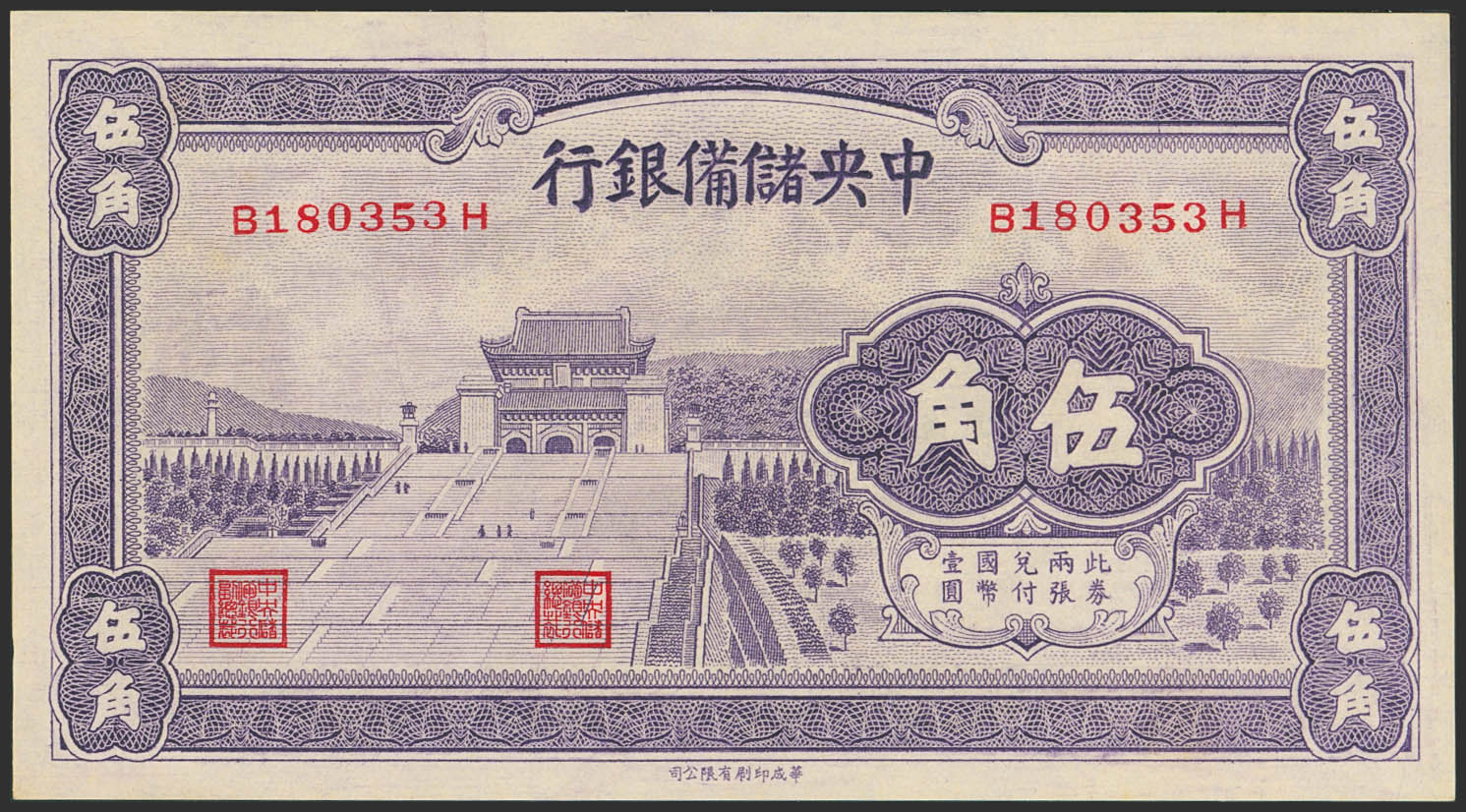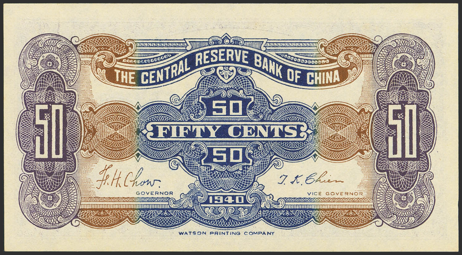 CHINA-PUPPET BANKS. 50 Cents. 1940. Central Reserve Bank. (Pick: J7a). Uncirculated.