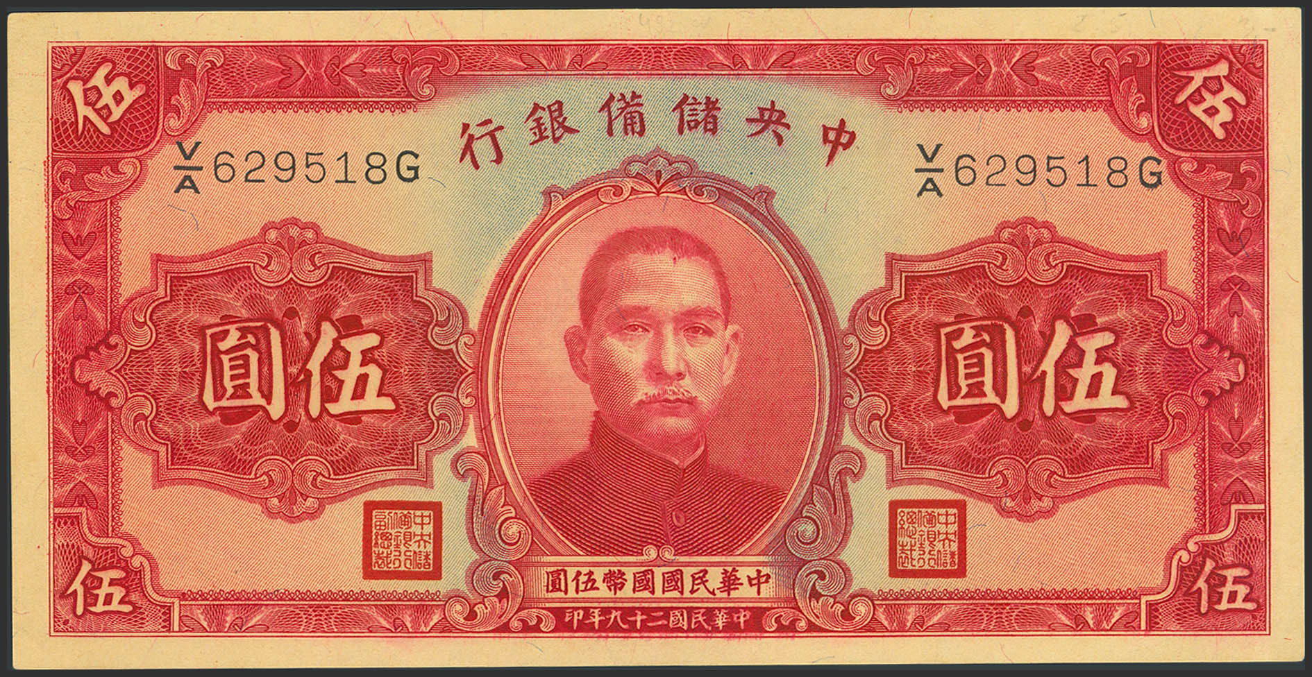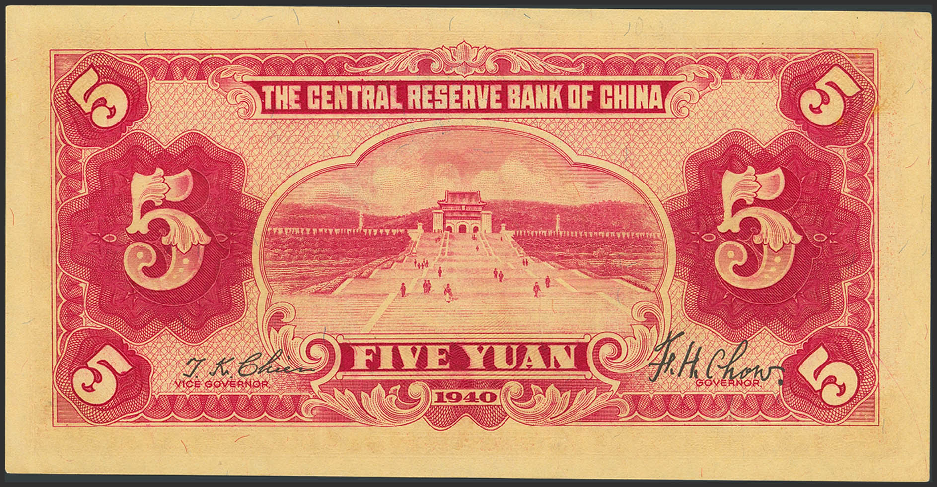 CHINA-PUPPET BANKS. 5 Yuan. 1940. Central Reserve Bank. (Pick: J10c). Almost Uncirculated.