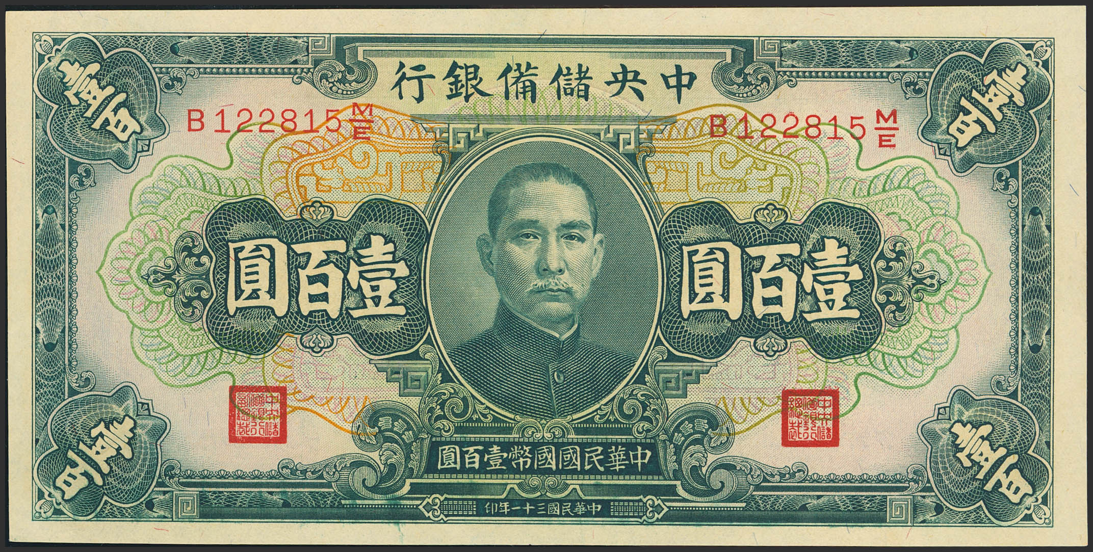 CHINA-PUPPET BANKS. 100 Yuan. 1942. Central Reserve Bank. (Pick: J14a). Almost Uncirculated.