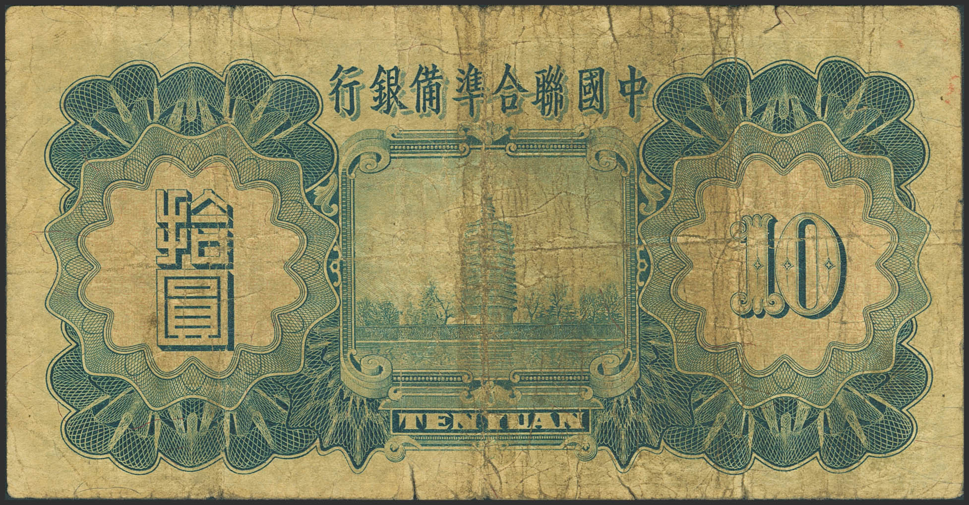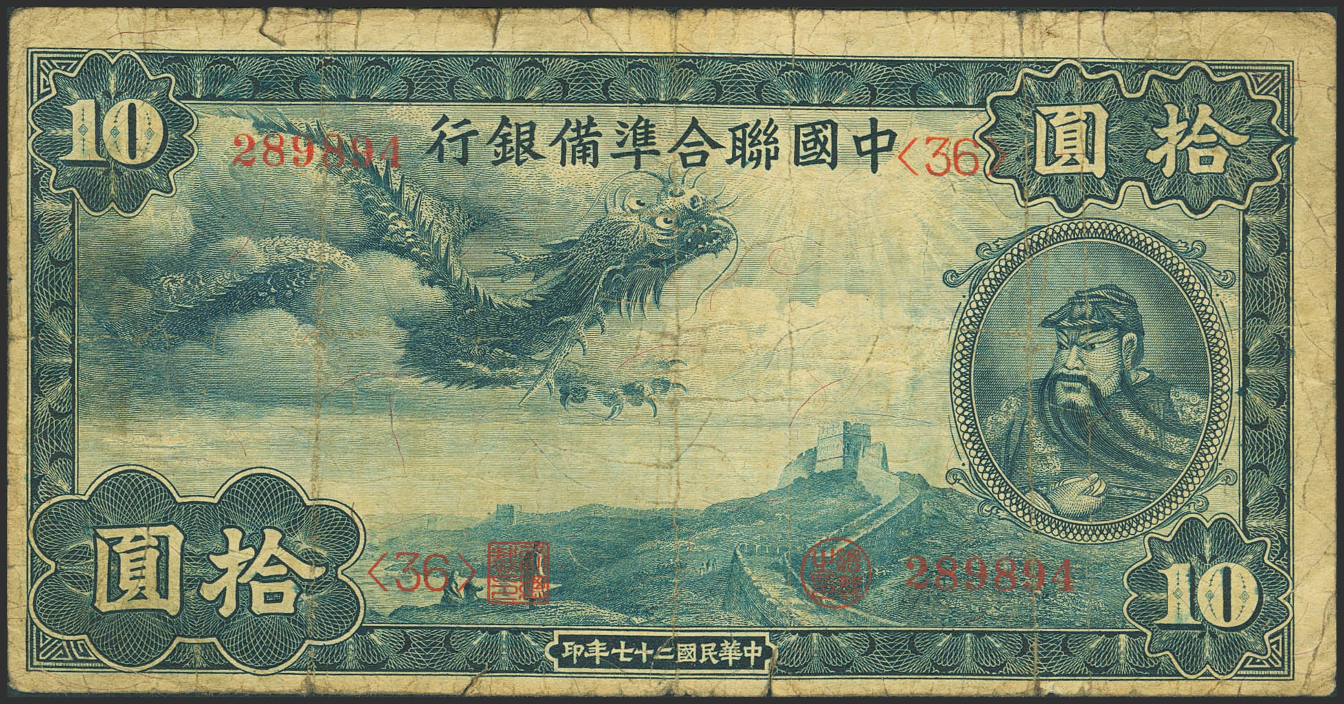 CHINA-PUPPET BANKS. 10 Yuan. 1938. Federal Reserve Bank. (Pick: J63a). Tears. Fine.
