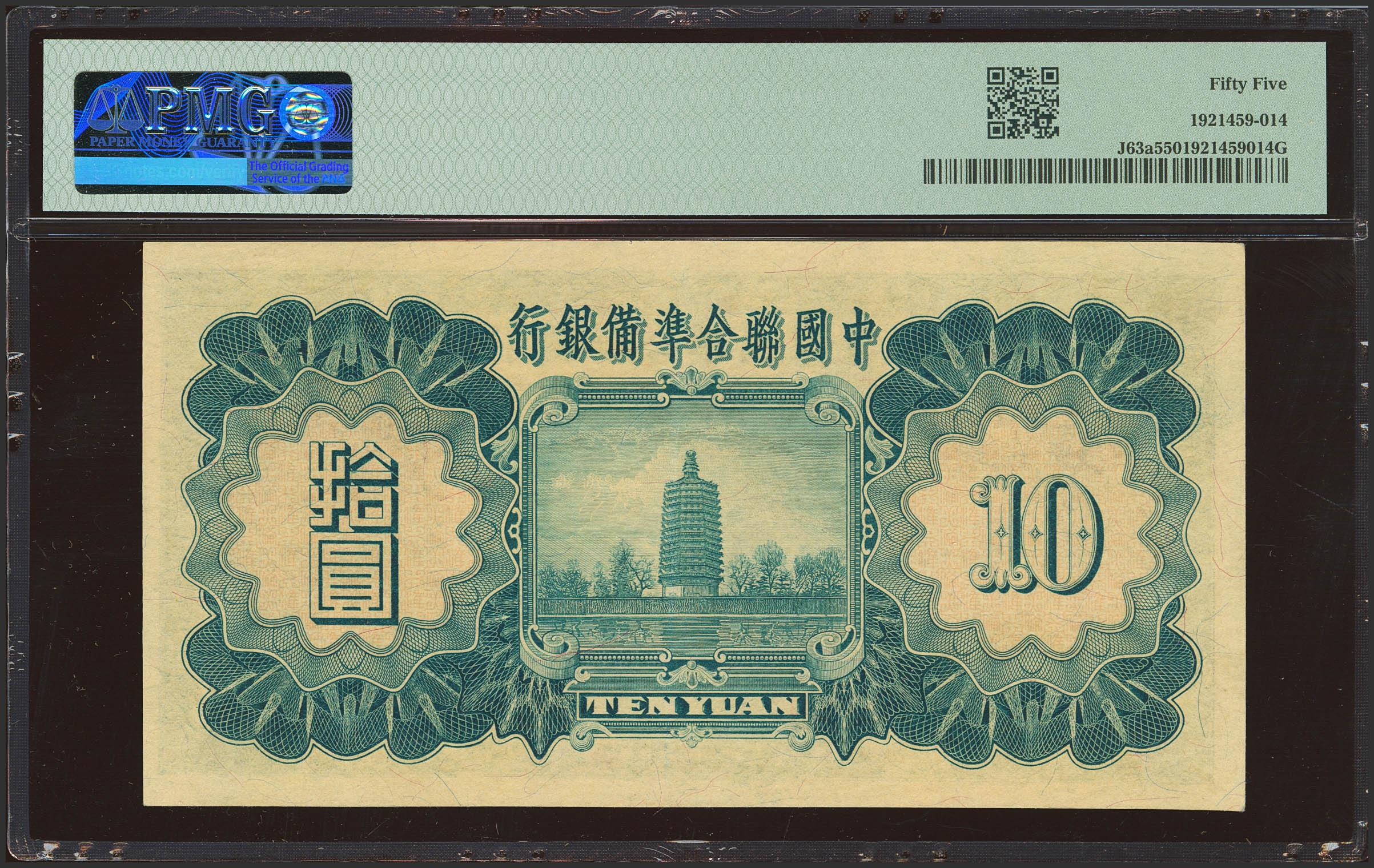 CHINA-PUPPET BANKS. 10 Yuan. 1938. Federal Reserve Bank. (Pick: J63a, SM: C286-16). PMG55.
