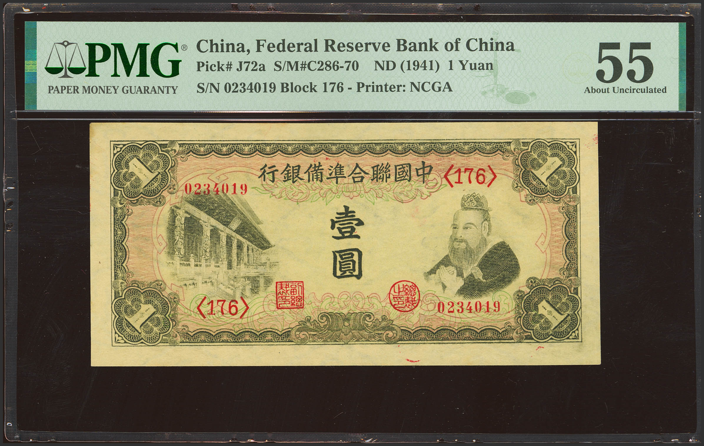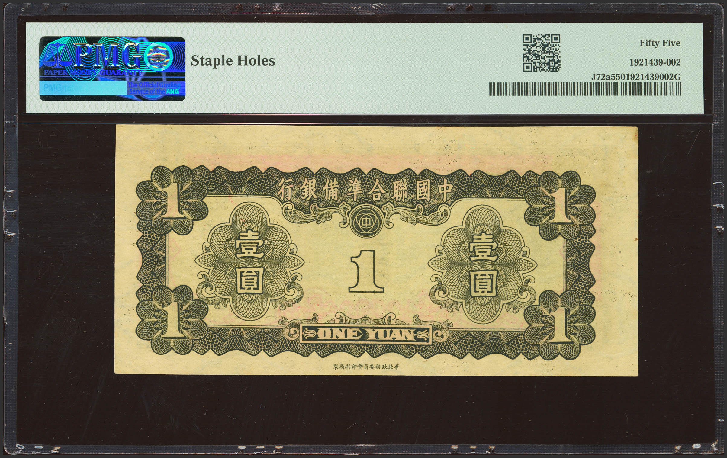 CHINA-PUPPET BANKS. 1 Yuan. (1941ca). Federal Reserve Bank. (Pick: J72a, SM: C286-70). PMG55 (staple holes).